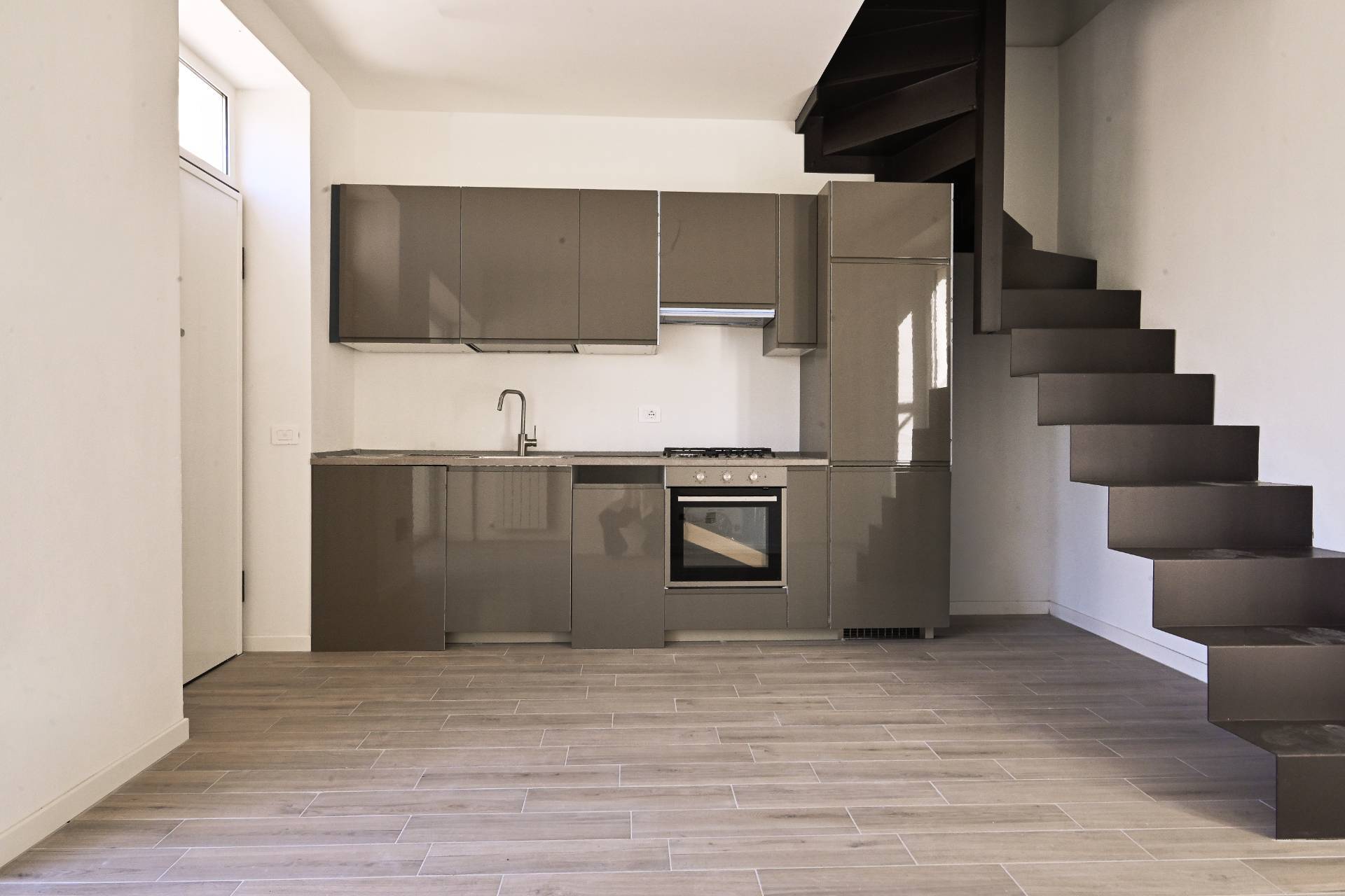 La casa si sviluppa su due livelli, per un totale di circa 55 mq. Al piano terra si trova la zona giorno, composta da un soggiorno con cucina a vista, caratterizzato da grande luminosit grazie allesposizione e a una vetrata fissa di circa 4 mq, oltre alla porta finestra con accesso diretto al portico esterno.