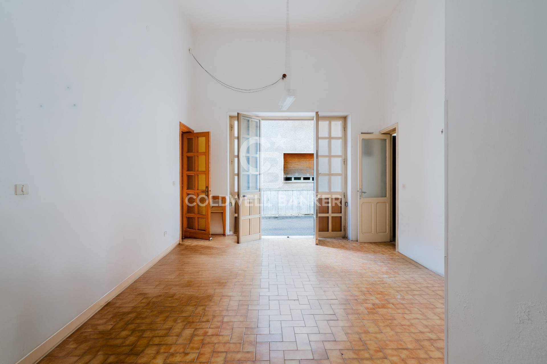 Limmobile si apre su un corridoio dingresso che conduce agli ambienti principali, attualmente distribuiti in pi vani ma facilmente rimodulabili per creare una moderna zona living con cucina a vista e spazi funzionali.