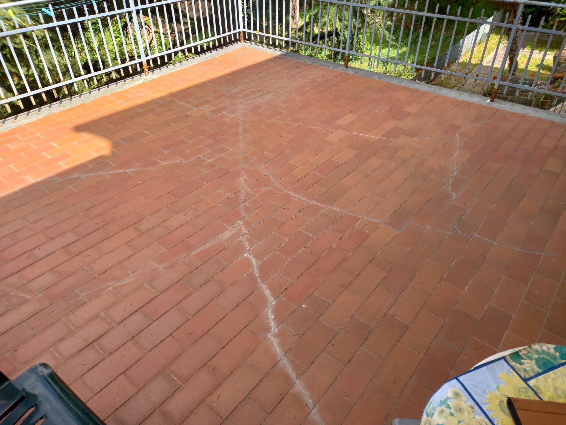 Al piano seminterraro - che ci accediamo sempre da scale interne dell'immobile- abbiamo una cucina abitabile con camino e ampia terrazza di 50 Mq, bagno con doccia e finestra, zona lavanderia e ampio garage.