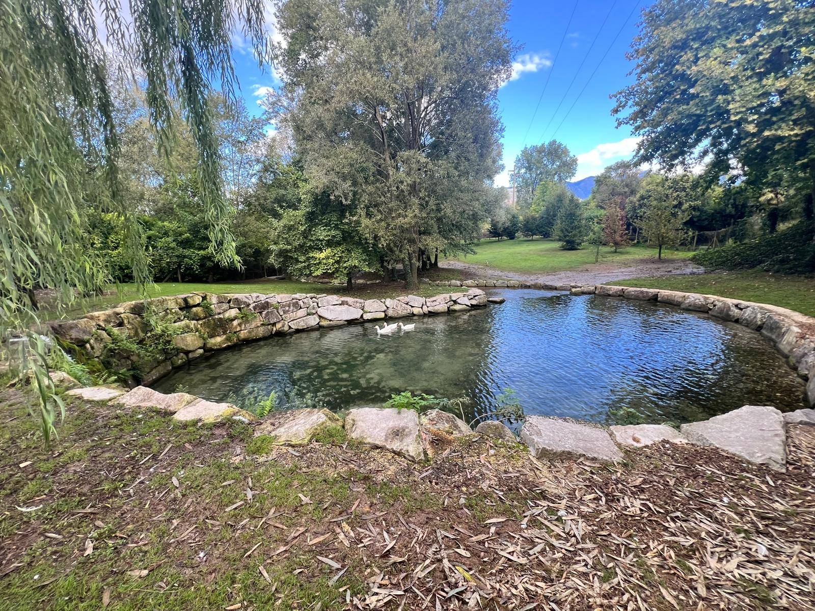 La villa, ottimamente mantenuta, presenta un ampio parco con laghetto.
