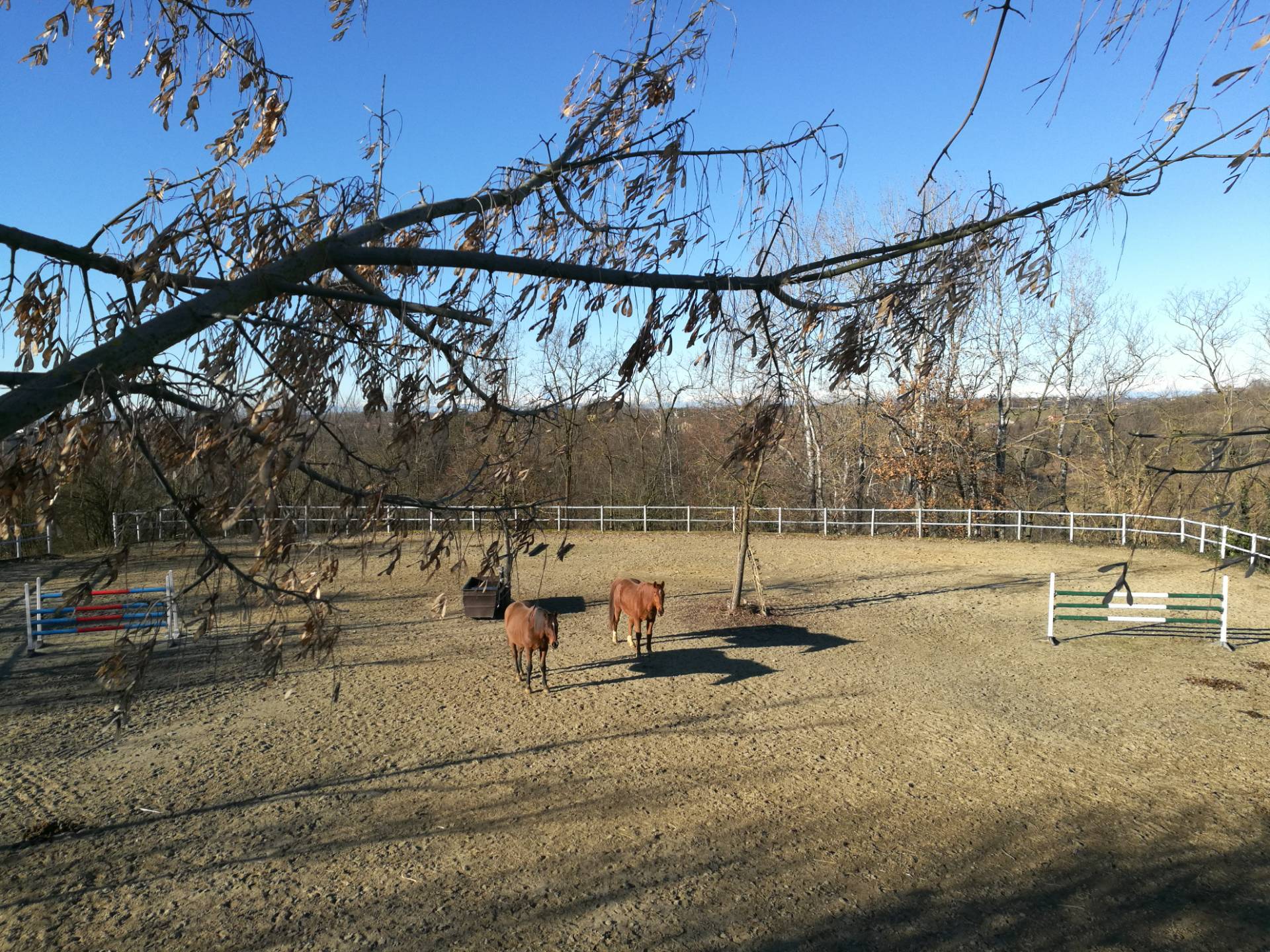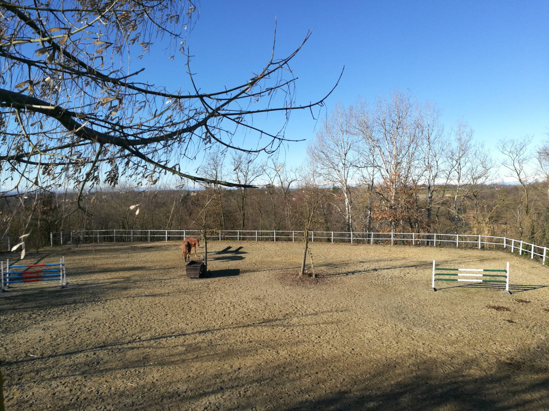La cascina in posizione dominante ha vista panoramica a 360° sulle Alpi ed attrezzata con 26 box per cavalli, selleria, maneggio coperto di circa 240 mq., campo ostacoli in sabbia (40 m x 25 m), campo in erba (40 m. x 50), fienile e paddock con tettoie tutti dotati di acqua.