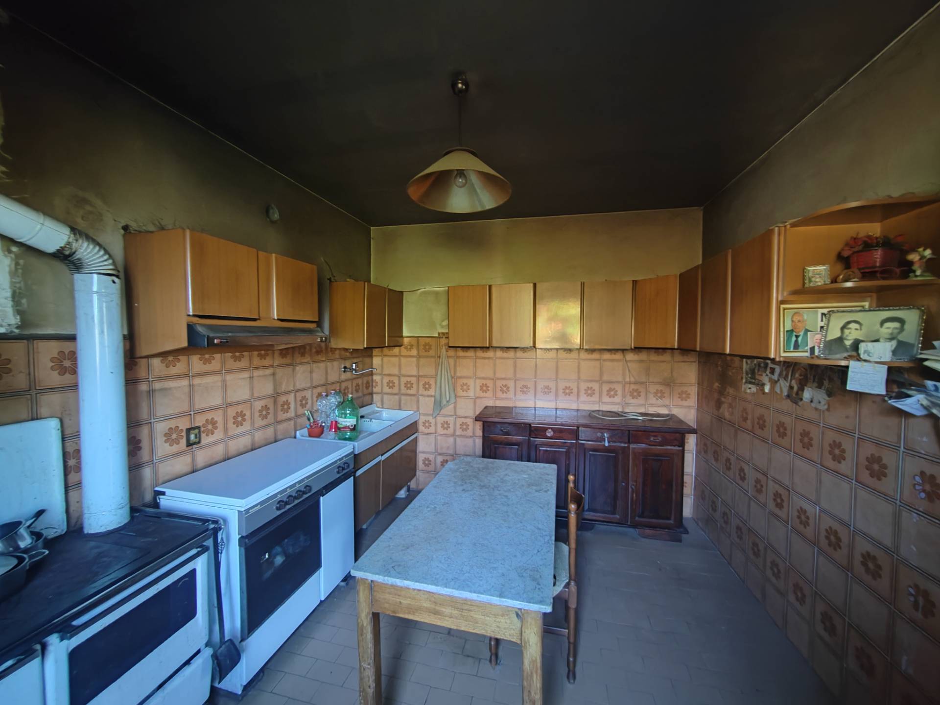 La propriet, disposta al piano terra rialzato, composta da: ingresso, cucina con camino, sala con balcone, camera matrimoniale e bagno.