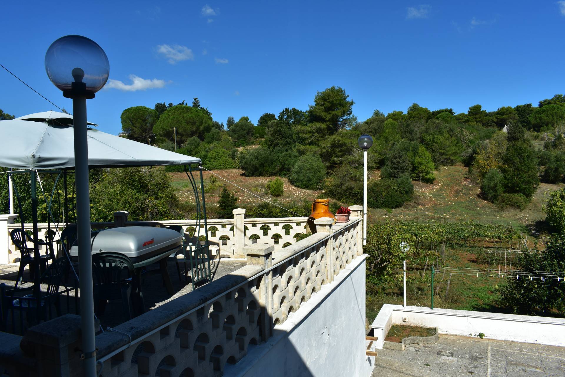 Il terreno di 9600 mq con alberi da frutta, fico, ulivo, pere e una parte con un vigneto in produzione.