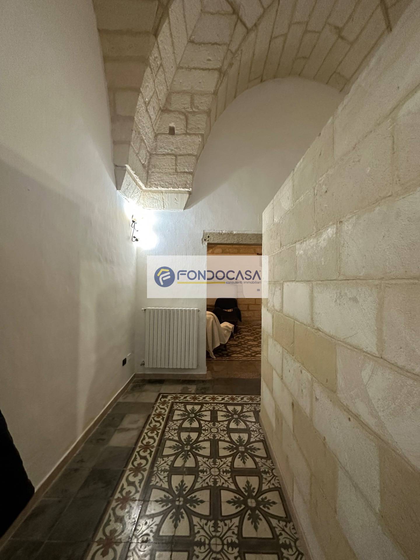 Limmobile si sviluppa su un unico livello e si compone di: Una camera da letto ampia e luminosa, con pareti in pietra a vista e pavimento decorato, ideale per chi cerca uno spazio intimo ma ricco di personalit; Unaccogliente zona living, cuore della casa, dove la geometria delle volte crea unatmosfera scenografica e al tempo stesso raccolta; Un bagno moderno e funzionale, dotato di doccia in vetro, sanitari sospesi e finestra che garantisce luce naturale; Una cucina abitabile, perfettamente integrata nel contesto, con accesso diretto allesterno; Uno scoperto retrostante di circa 80 mq, riservato e silenzioso, perfetto per pranzi allaperto, momenti di relax o per dare vita a un angolo verde da vivere tutto lanno.