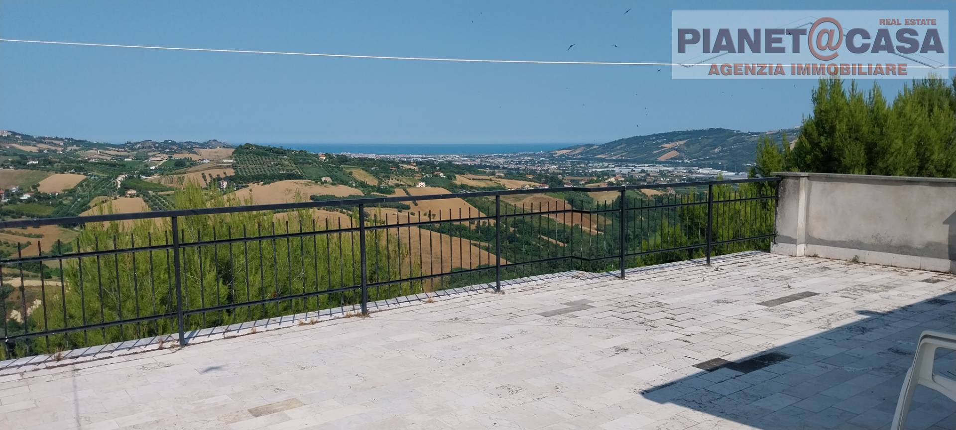 - Piano Secondo composto da unico locale adibito a cucina con camino ed un Terrazzo di circa 60 mq con ottima esposizione e bellissima vista panoramica sui paesi limitrofi, sulla piazza principale del paese e sulla costa Adriatica.