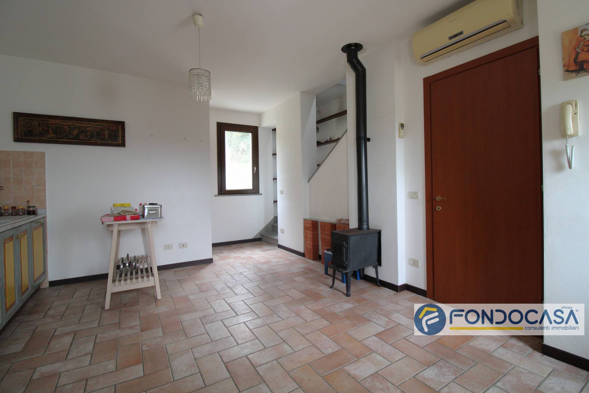L'ingresso dal portone privato al piano terra, ci conduce tramite una scale interna esclusiva al primo piano dove troviamo la luminosa cucina abitabile dotata di balcone e il bagno con finestra e doccia.