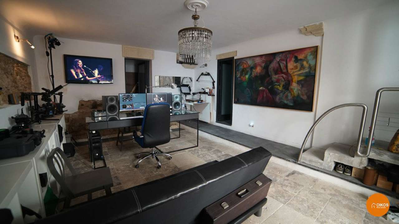 Il piano terra ospita uno studio di circa 30 mq, che pu essere adibito ad un pied a terre in quanto composto da un angolo cottura, un ripostiglio ed un bagno con doccia.