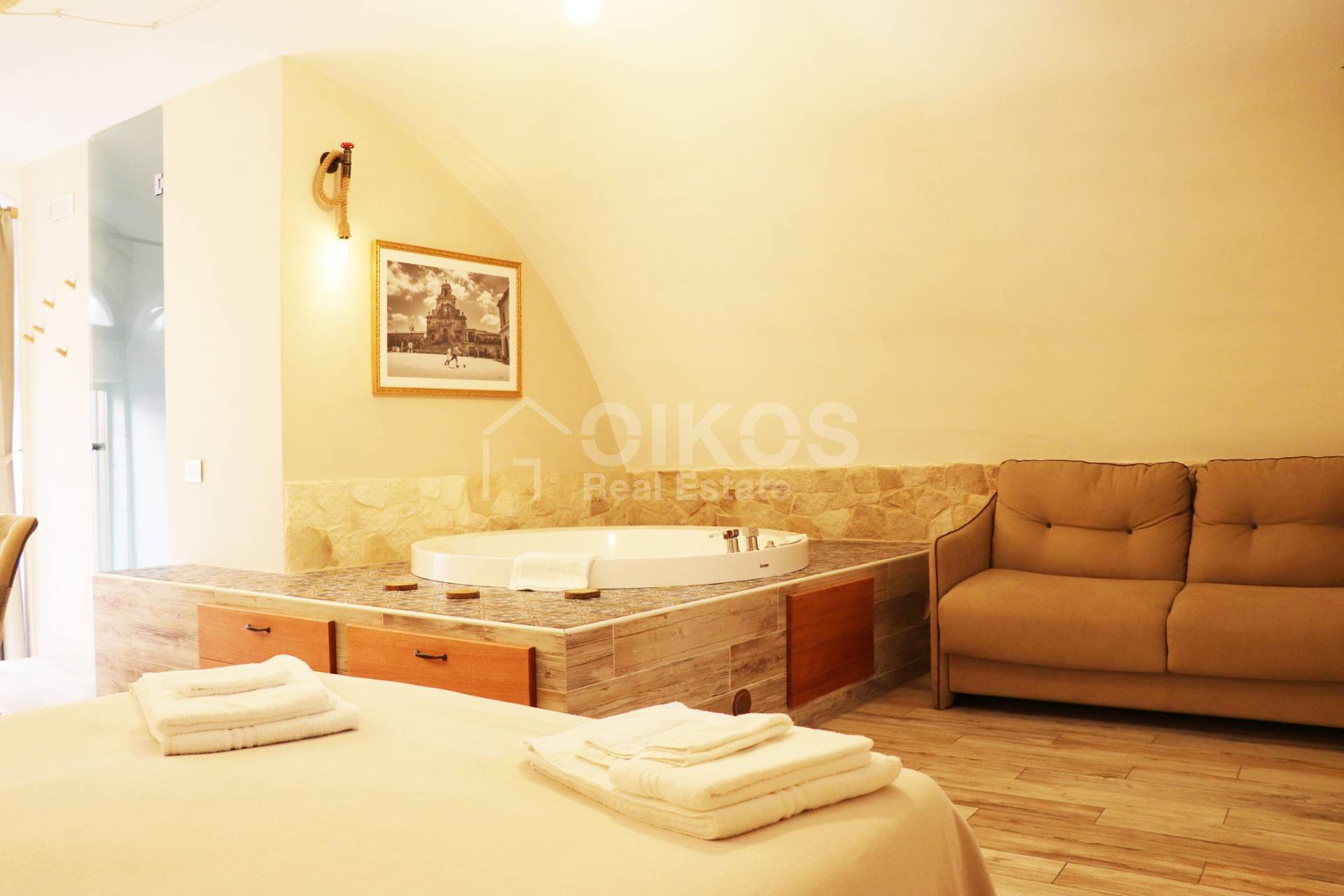 Comprende 5 vani e si articola al primo piano in un ambiente unico con angolo cottura, zona notte e vasca idromassaggio a vista.