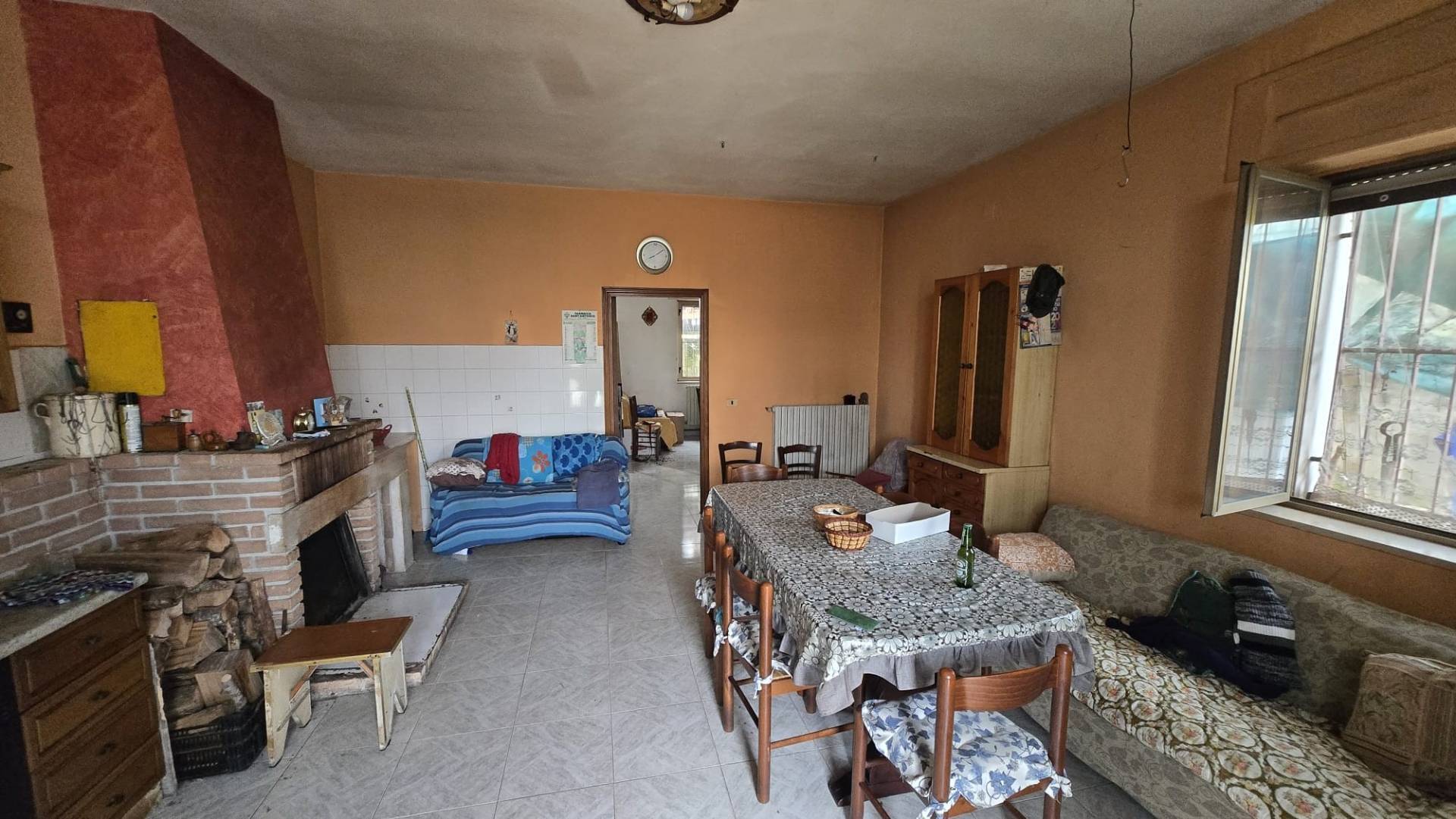 Il piano terra, di circa 110 mq, attualmente adibito a deposito arricchito da camino, perfetto come zona hobby, taverna o spazio multifunzionale.