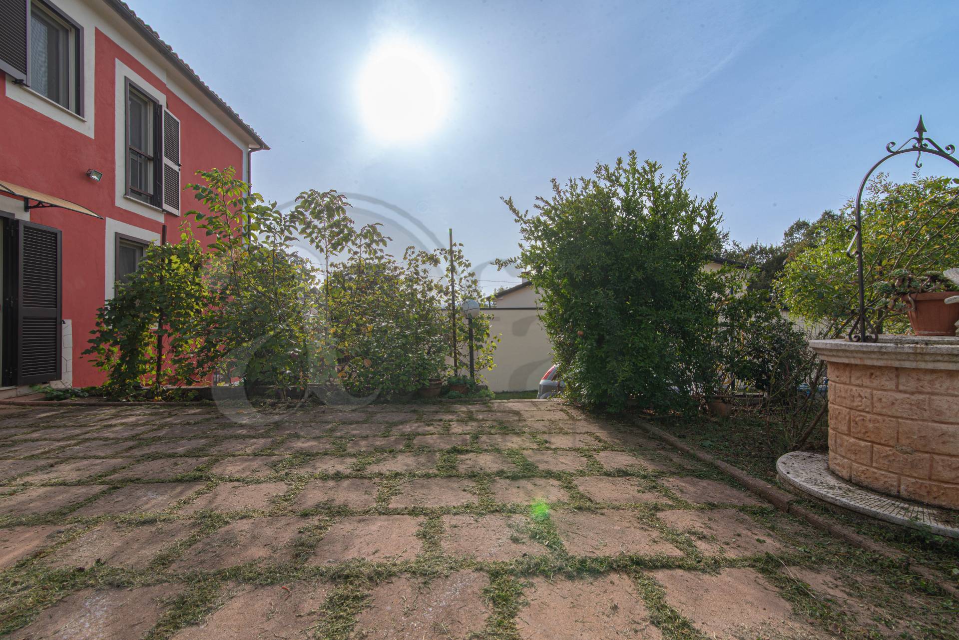 Il facile accesso alla casa termina in uno spazio adibito a parcheggio esterno che si trova sul lato sinistro dell'abitazione e dal quale si pu ammirare il giardino di pertinenza, recintato e ben curato.
