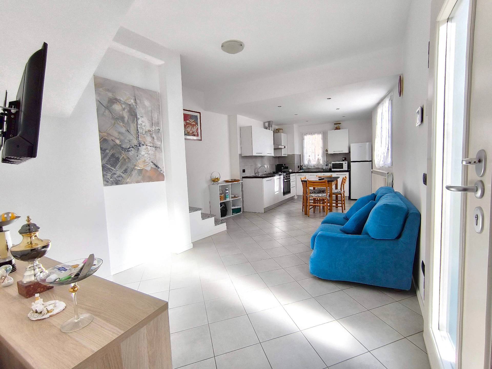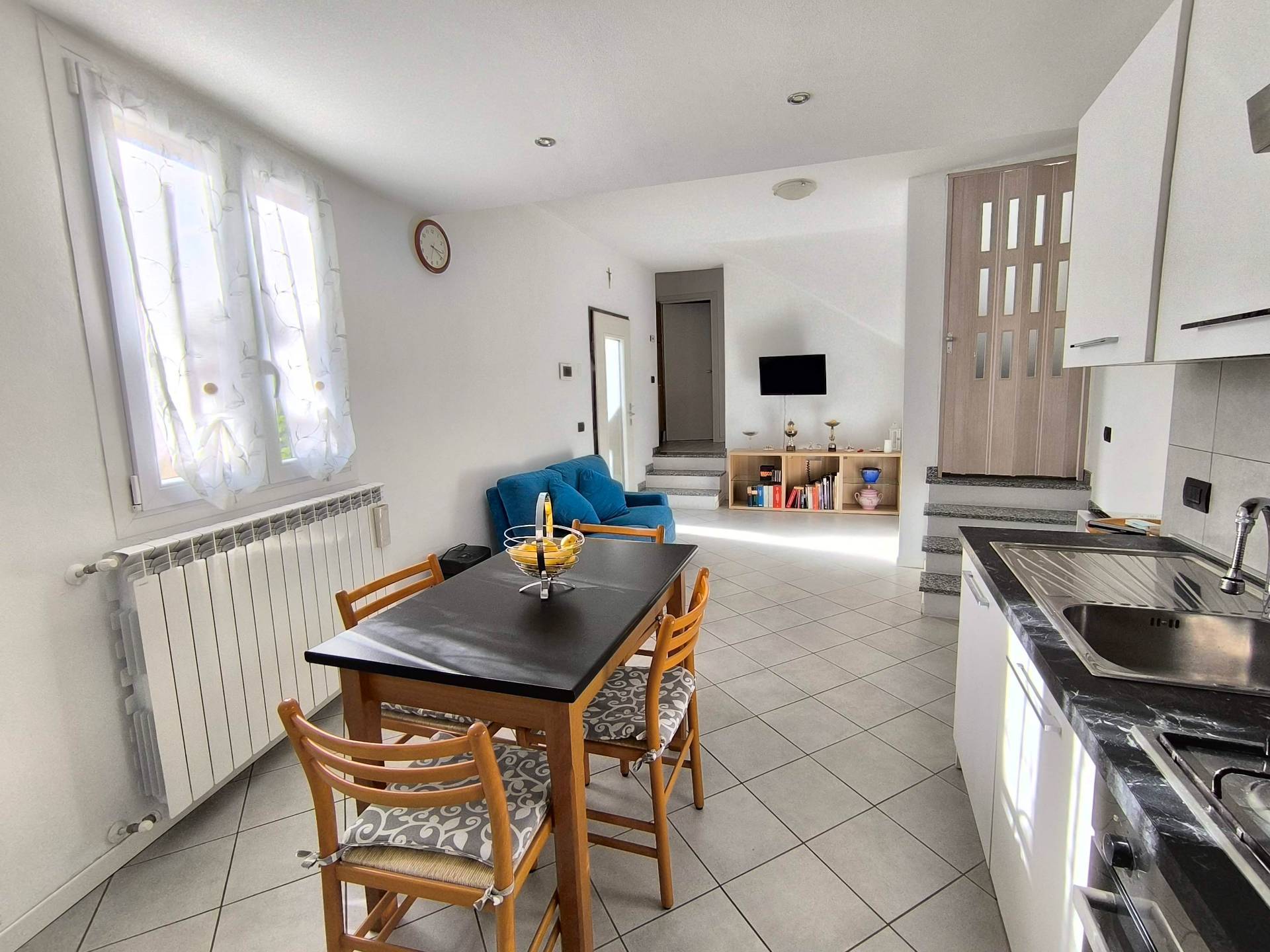 La soluzione composta al piano terra da soggiorno con cucina a vista e servizio oltre ad ampio box dal quale si accede direttamente nell'abitazione.