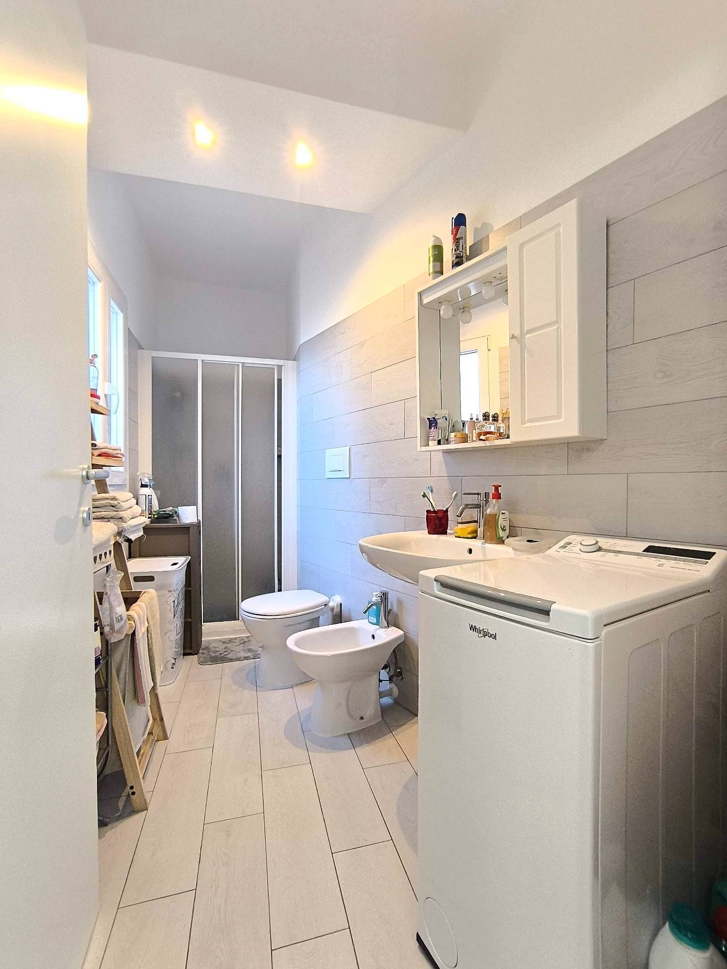 Al piano primo due ampie camere, ripostiglio, servizio finestrato e balcone.