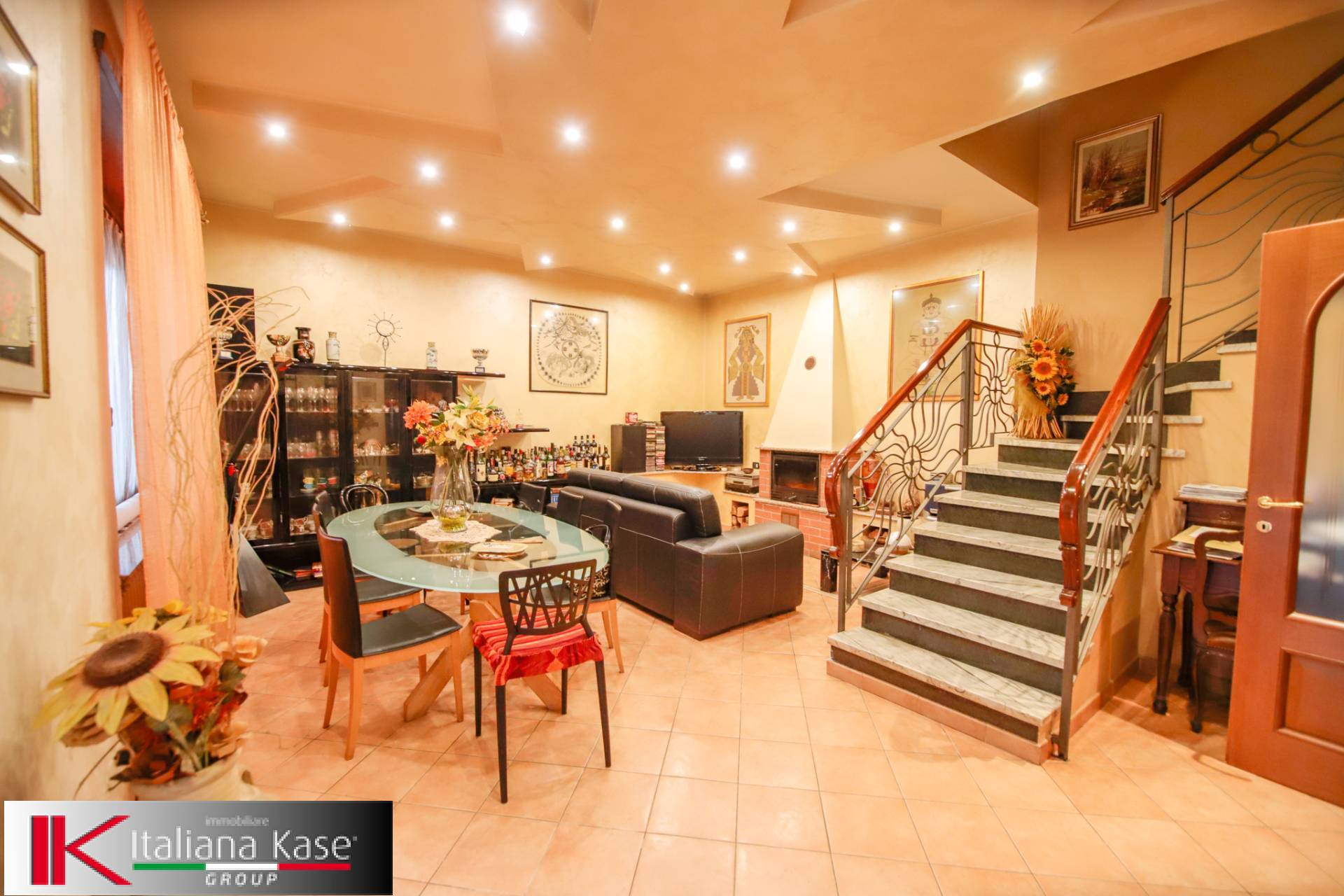 La casa si dispone su due livelli, al piano terra troviamo ingresso living su ampio salone con caminetto a vista, cucina abitabile, ripostiglio e bagno con doccia, tramite scala interna si accede al primo piano composto da due camere letto, una con cabina armadio, ripostiglio, secondo bagno con vasca.