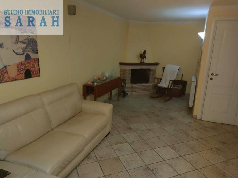 Al piano seminterrato si trova la zona living con un bel camino, e una stanza sottoscala ideale come ripostiglio e per ricavare un piccolo servizio.