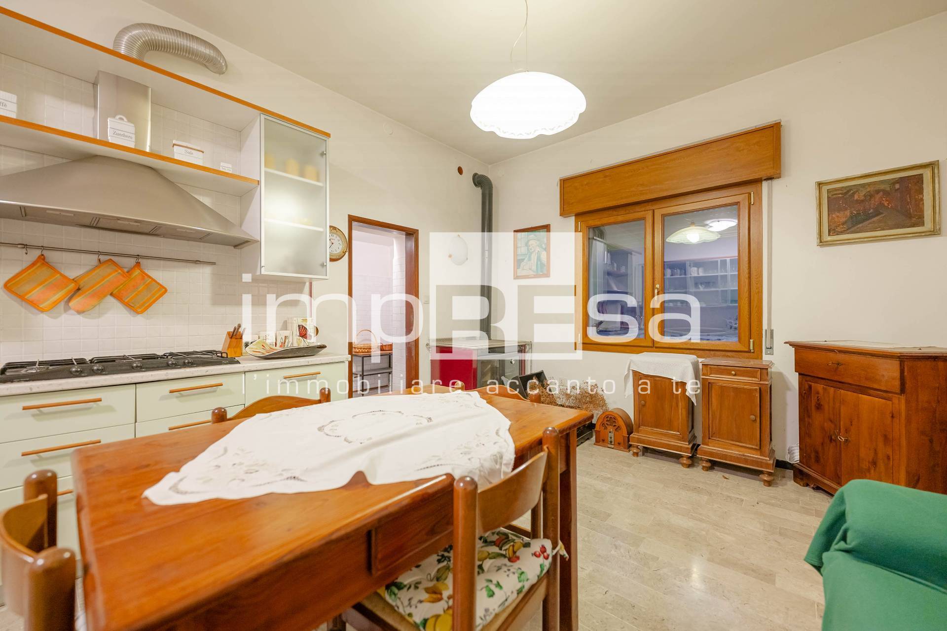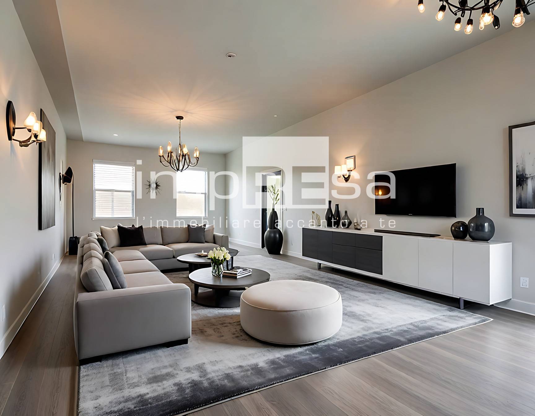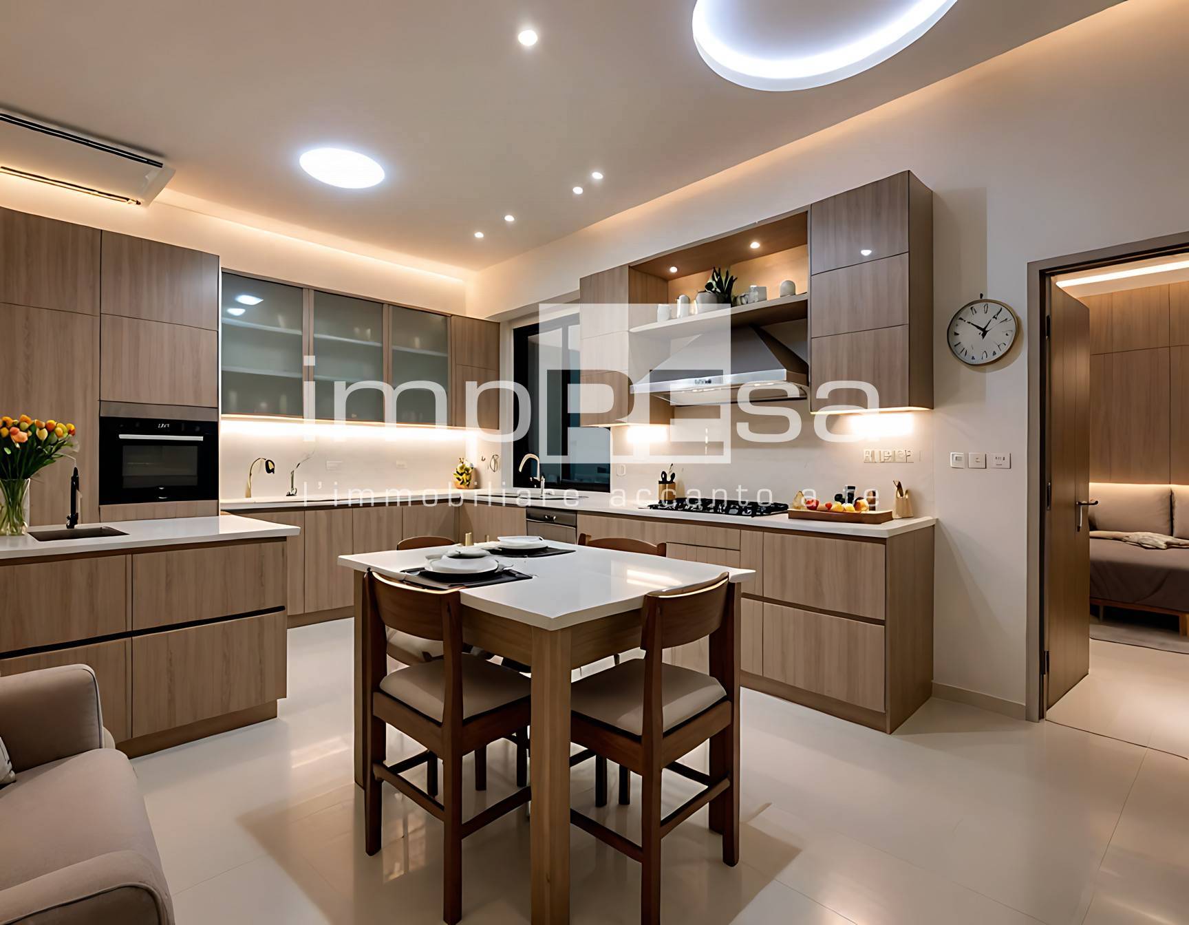 Da qui si passa a un luminoso soggiorno, cuore conviviale della casa, a una cucina ampia e funzionale dove immaginare lunghe cene in compagnia, e a un bagno che dona praticit e comfort alla zona giorno.