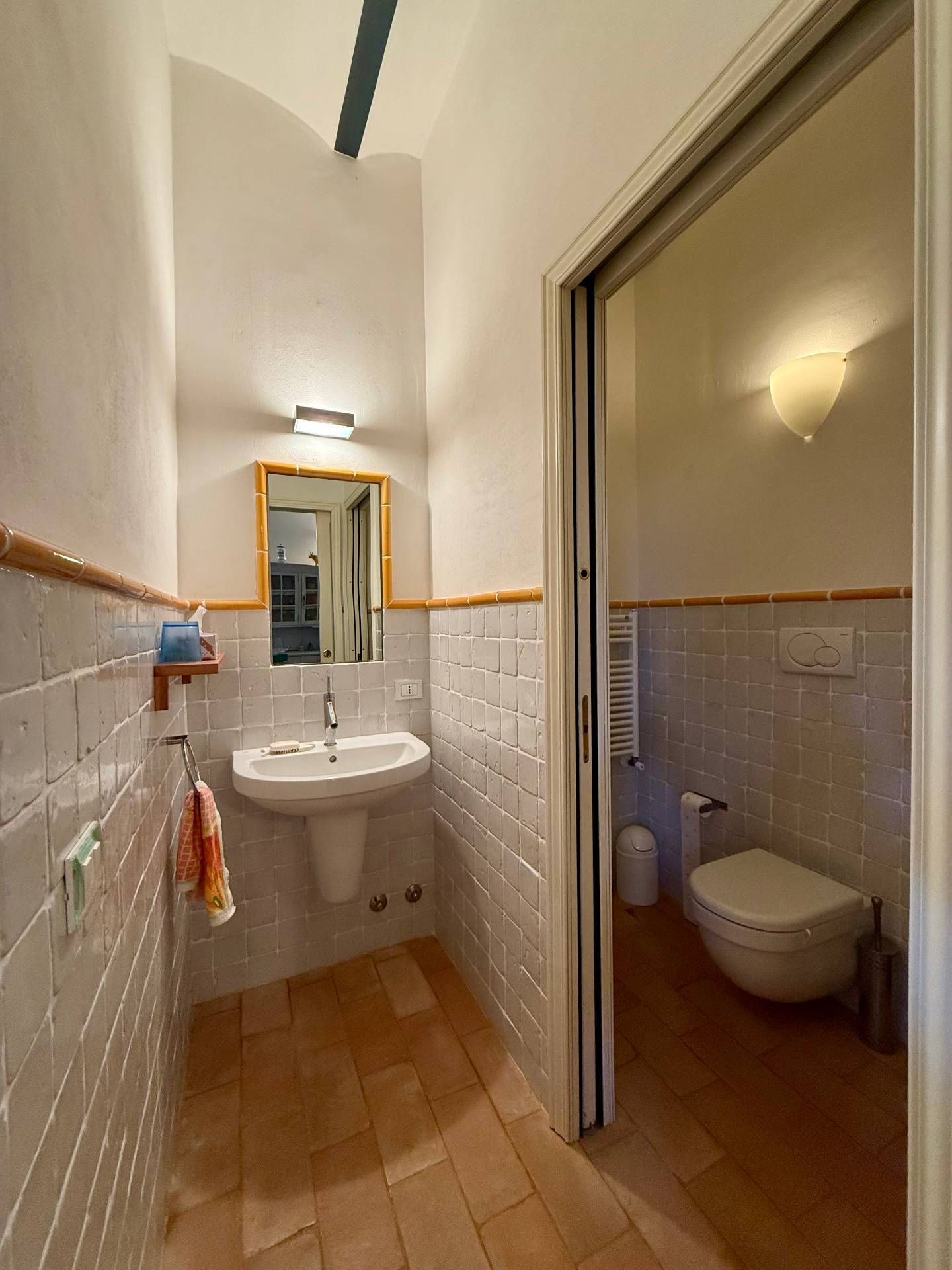 Gli ambienti sono valorizzati da soffitti a doppia altezza con travi in legno a vista e mezzane in cotto, elementi che richiamano con eleganza il carattere autentico della tradizione toscana.