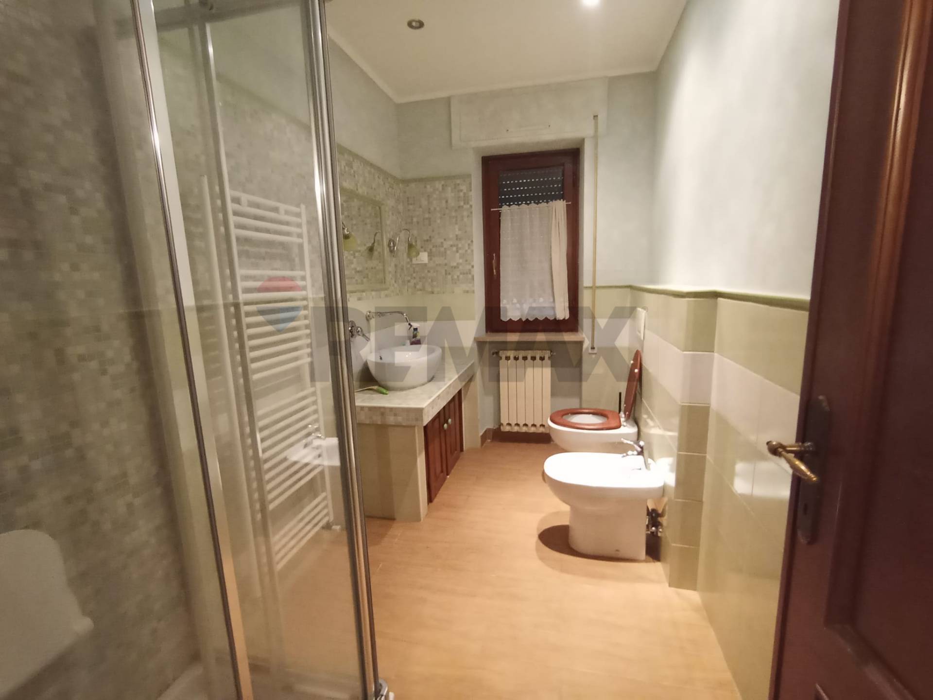 Il bagno al piano superiore, pur essendo funzionale, potrebbe beneficiare di un ammodernamento.