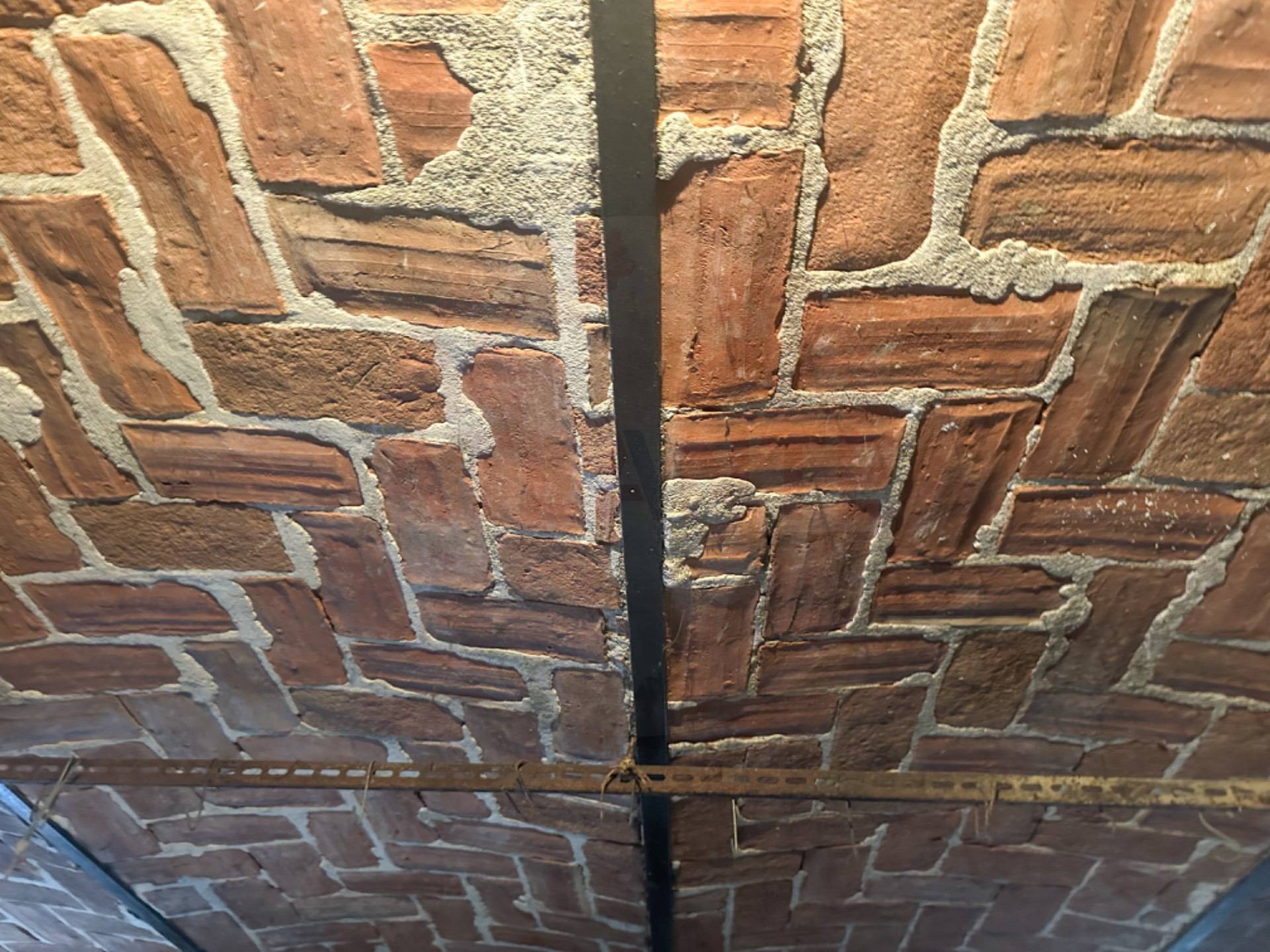 The property, in need of renovation, is spread over several levels and features a spacious ground-floor garage with a characteristic exposed brick ceiling, offering direct access to the living area. The residential space is located on the first and second floors: - On the first floor, you'll find a hallway a bright living room, a kitchen with access to a small balcony, a bathroom, and an internal staircase leading to the upper level.