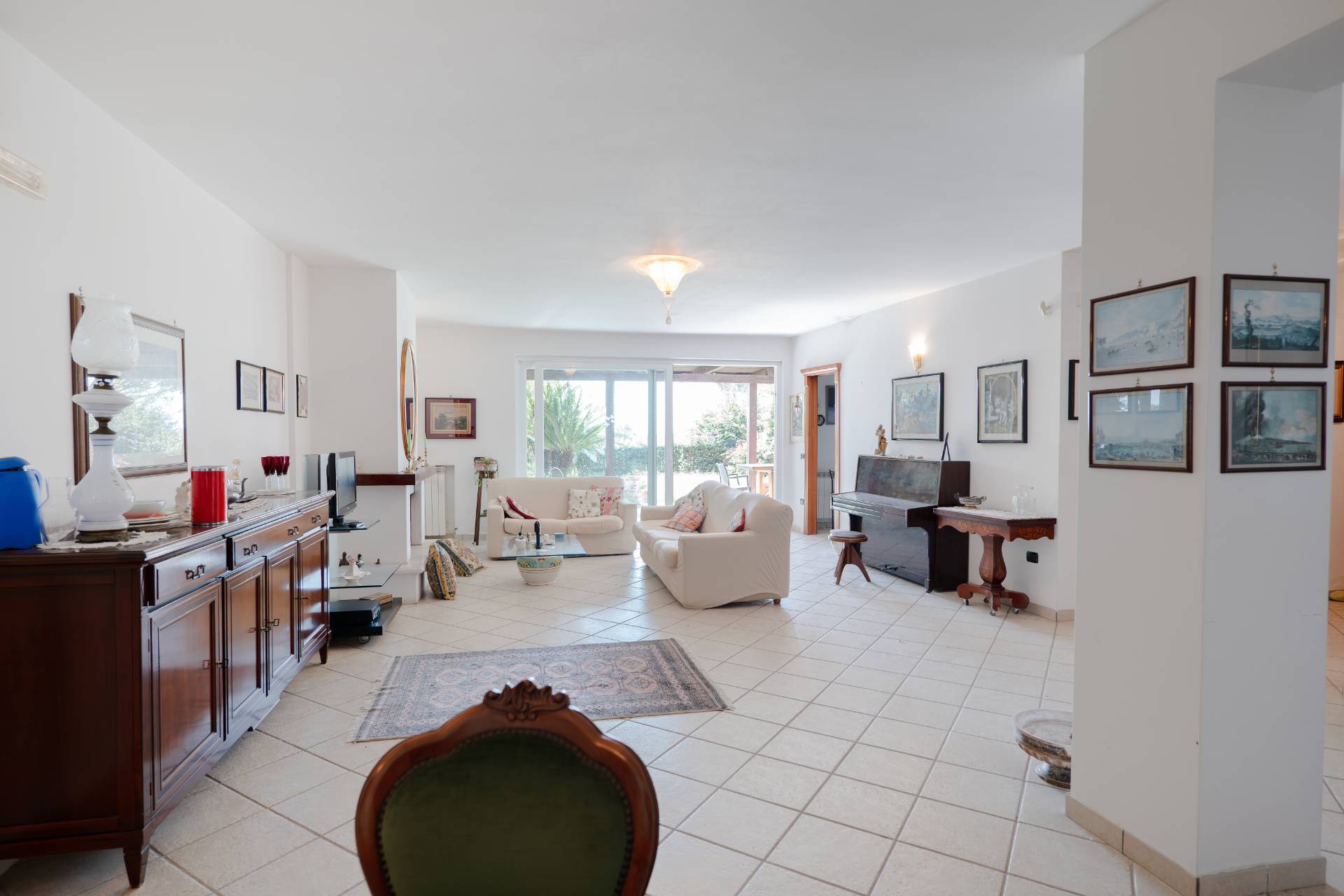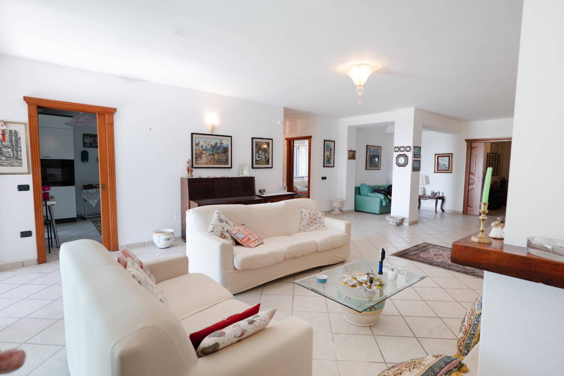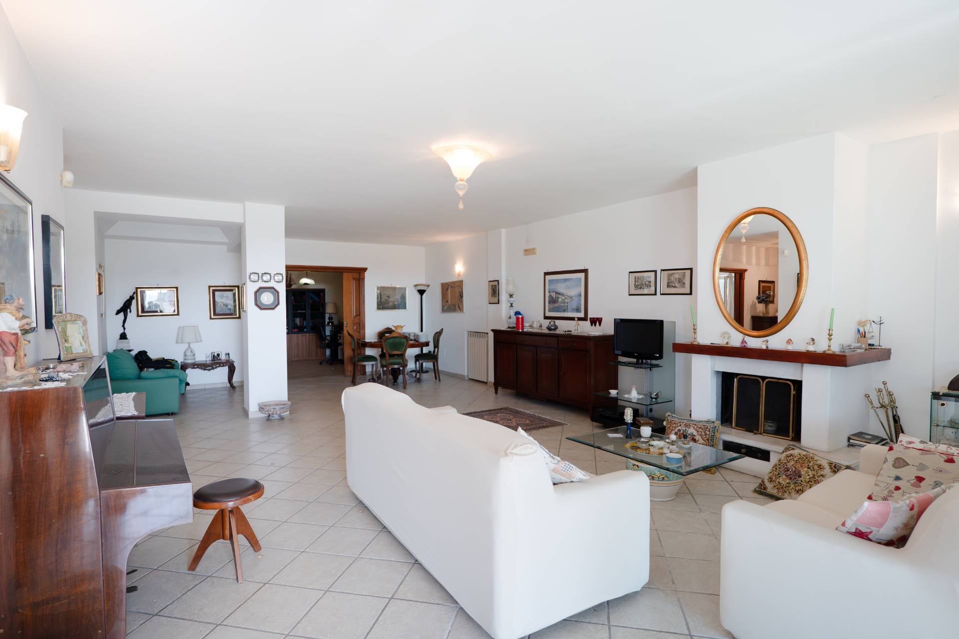 Un grande salone doppio accoglie la zona giorno, luminoso e arioso, perfetto per ricevere ospiti o trascorrere momenti di relax in famiglia.