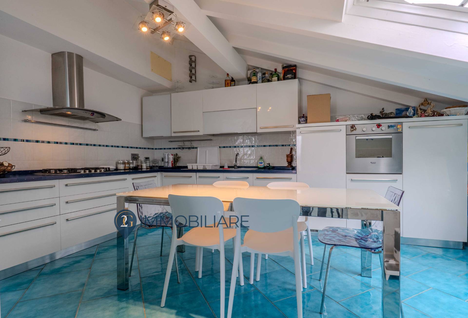 Limmobile al quale si accede attraverso panoramica terrazza cos suddiviso: ingresso in ampia zona giorno, cucina abitabile e bagno; tramite scala si accede alla sottostante zona notte suddivisa in quattro camere e due bagni.
