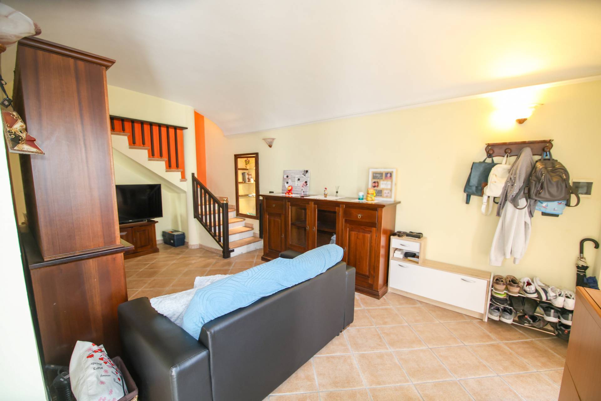 Al piano terra la zona giorno, comprende il soggiorno living, la cucina abitabile e il primo bagno, con vasca idromassaggio; al piano primo due camere e il secondo bagno, con doccia; piano sottotetto locale open space, rifinito, di 40 mq circa.