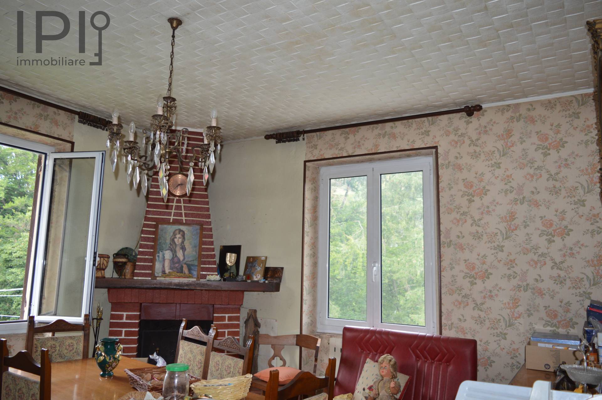 Qui troviamo un bagnetto, due vani e l'appartamento abitativo, composto da ingresso alla genovese con stufa a pellet, bagno con doccia con finiture anni 90, due camere da letto, sala con camino e cucina con stufa e cucinino.
