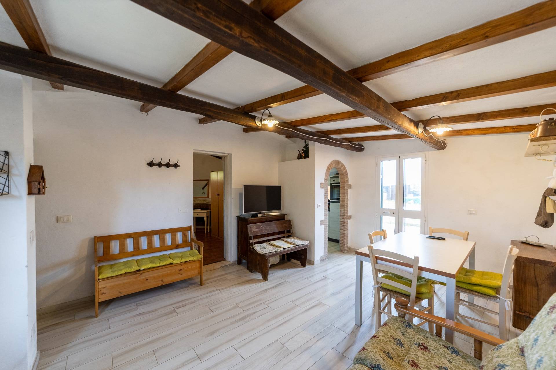 La propriet all'esterno dispone di un grande giardino dove possibile anche entrare in macchina e parcheggiare all'interno, di una zona pavimentata adiacente all'uscita del soggiorno dove troviamo una cucina esterna, con zona pranzo, barbecue e forno La casa in buono stato di manutenzione autonoma e permette di vivere in totale privacy e tranquillit la vostra vacanza.