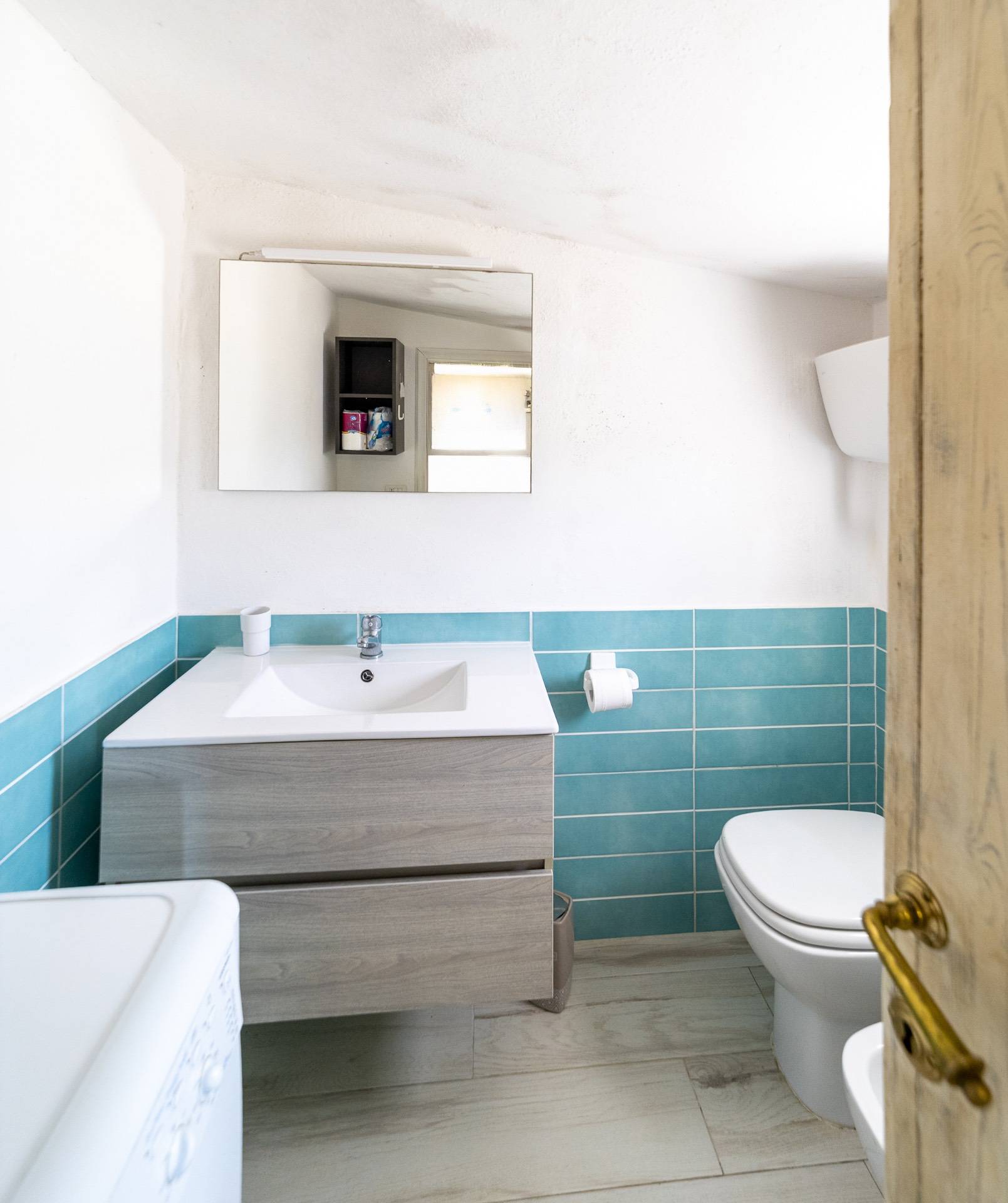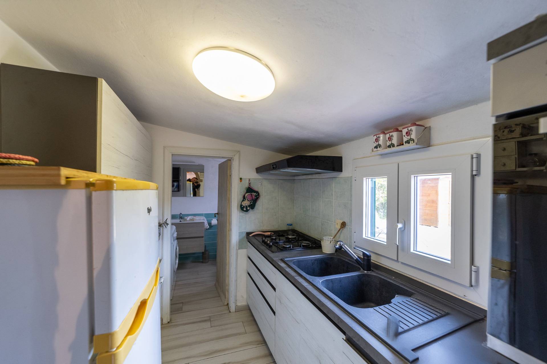 Composta da salottino con cucinino e bagno di servizio con lavatrice, due camere, bagno.