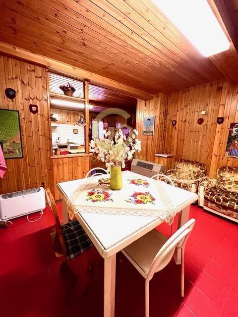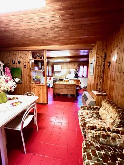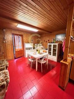 L'accesso all'immobile avviene mediante veranda e ulteriore porta di ingresso, l'immobile composto: al piano terra ingresso in ampia zona giorno e grande cucina con camino, bagno di servizio, tramite scala interna si accede al piano 1°composto da piccolo disimpegno notte e quattro ampie camere matrimoniali (possibilit fino a 12 posti letto) con pavimento in legno, bagno piastrellato con doccia e con finestra.