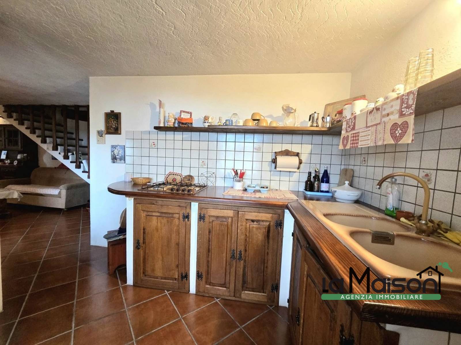 '?Varcata la soglia del piano terra, si viene accolti da una zona giorno calda e suggestiva.
