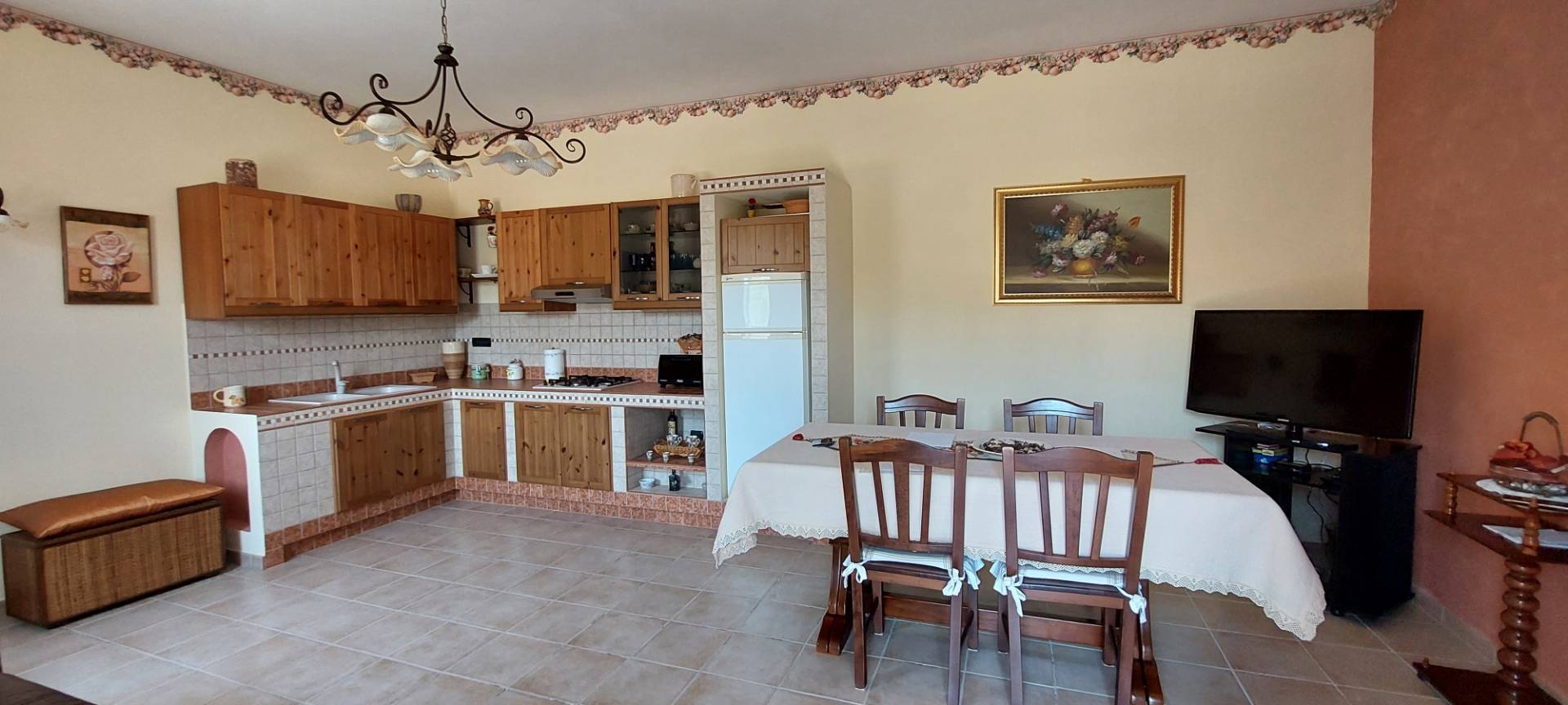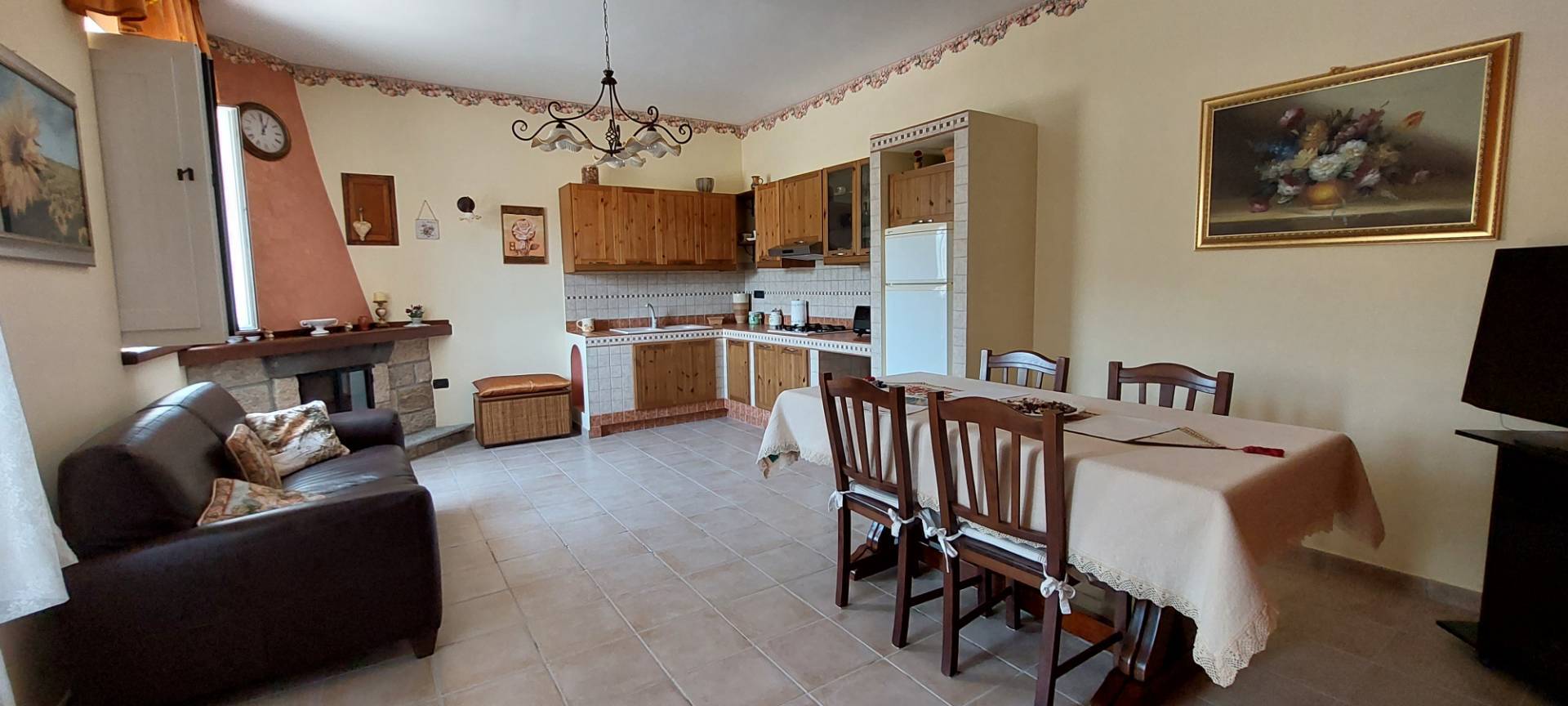 La soluzione composta da: ingresso, cucina sala pranzo con termo-camino, soggiorno, bagno con doccia, tre camere da letto matrimoniali e cucinotto.