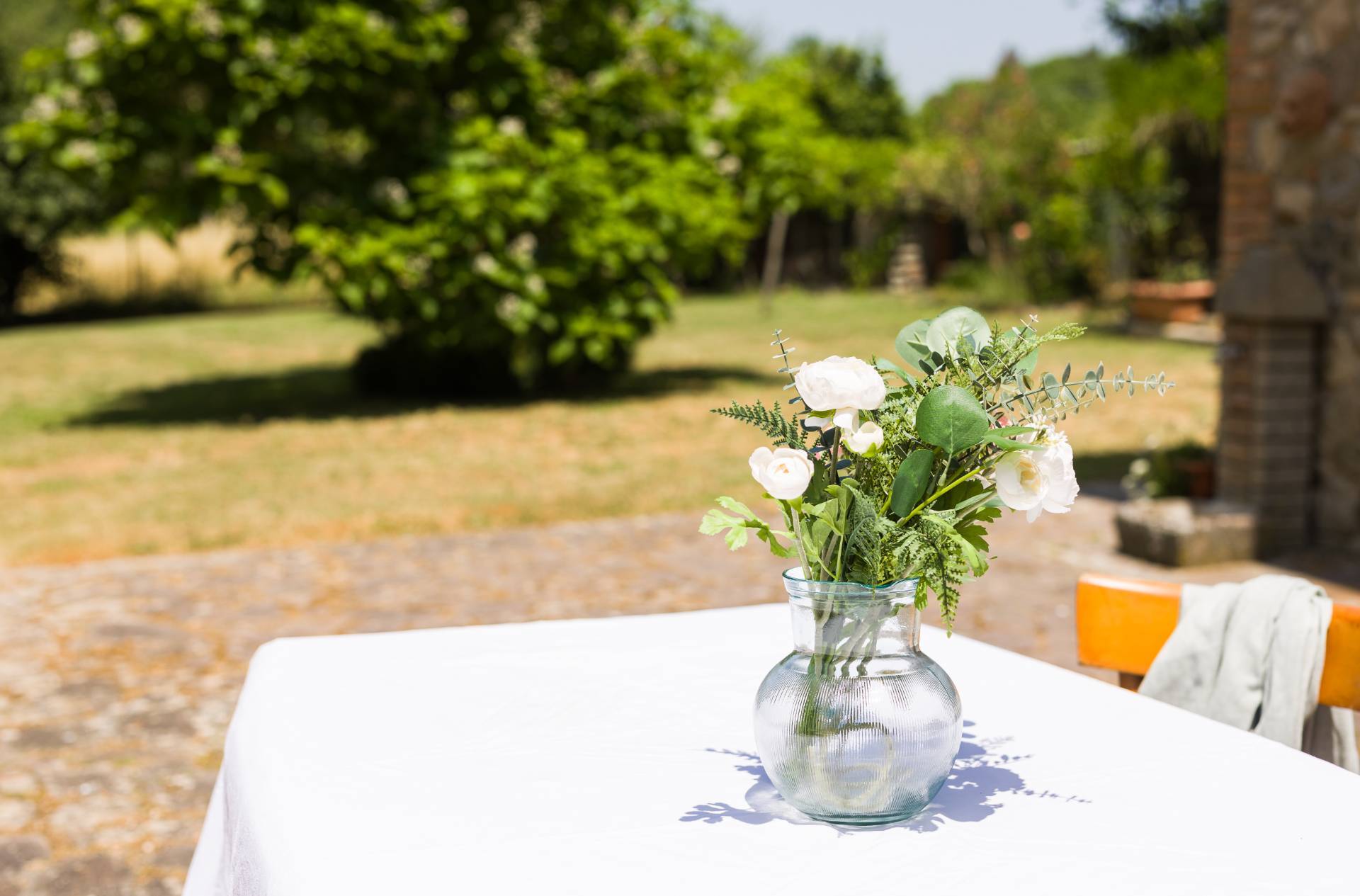 La bella scala esterna in pietra, quindi, ci conduce al piano superiore dove troviamo un appartamento pronto ad ospitare una famiglia numerosa; un soggiorno con camino, una sala da pranzo, una cucina con loggia, due servizi e tre camere da letto compongono questo piano.