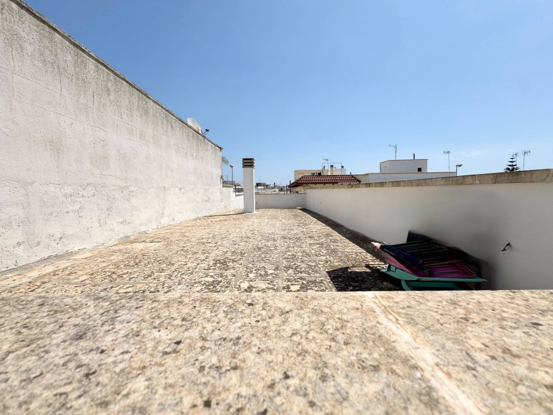 Il lastricato solare, disposto su due livelli, gi servito dagli impianti idrico ed elettrico: uno spazio prezioso da vivere sotto il cielo stellato, per momenti di relax o cene destate con amici.
