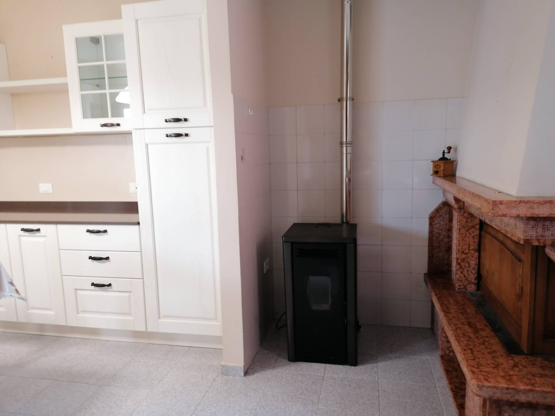 L'intera unit abitativa pu essere frazionata verticalmente grazie a 2 ingressi gi esistenti e si compone di: salone, soggiorno con angolo cottura, camino e stufa a pellet, cucinotto, dispensa, 2 cantine ad uso taverna, bagno finestrato al piano terra; 4 camere matrimoniali e 2 bagni finestrati al piano superiore.