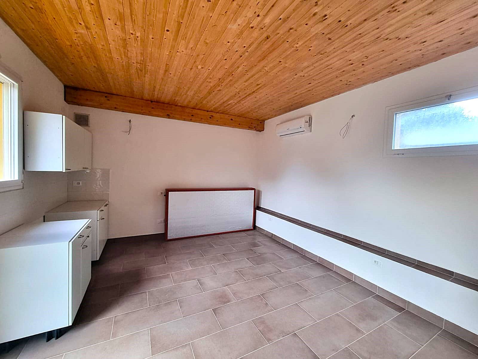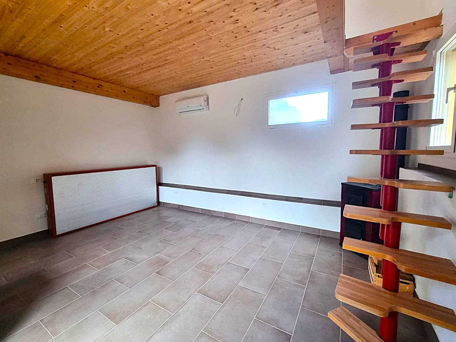 L'abitazione posta su due livelli, al piano terra ci accoglie un ampio soggiorno con cucina a vista, una scala ci accompagna al piano primo dove troviamo la camera da letto matrimoniale, un piccolo studio e il bagno.