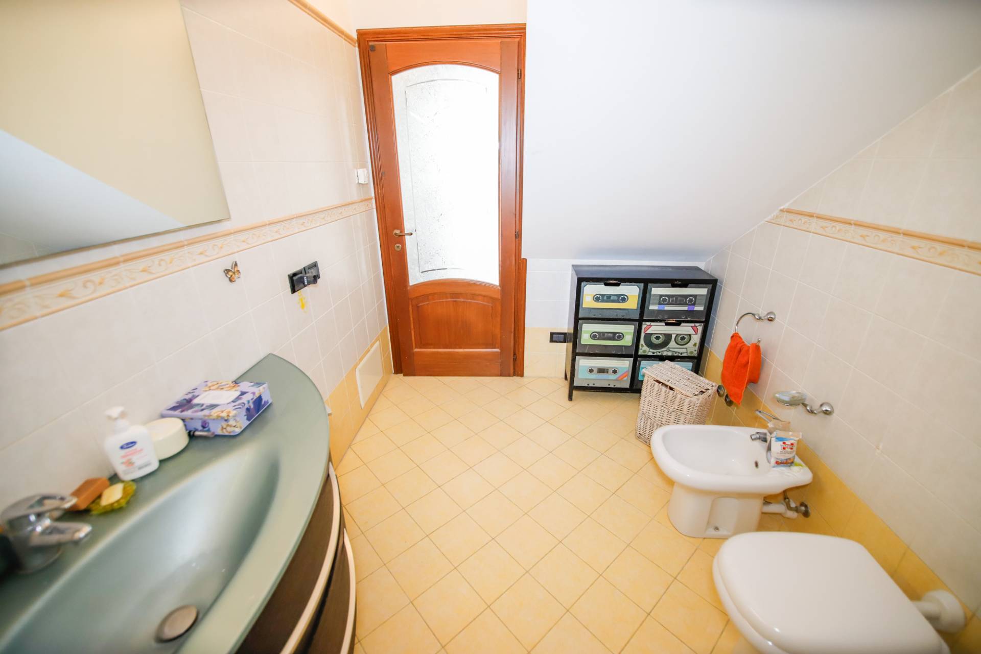 Al piano primo, accessibile tramite comoda scala in muratura, tre camere da letto di cui una con cabina armadi e doppi servizi di cui uno padronale.