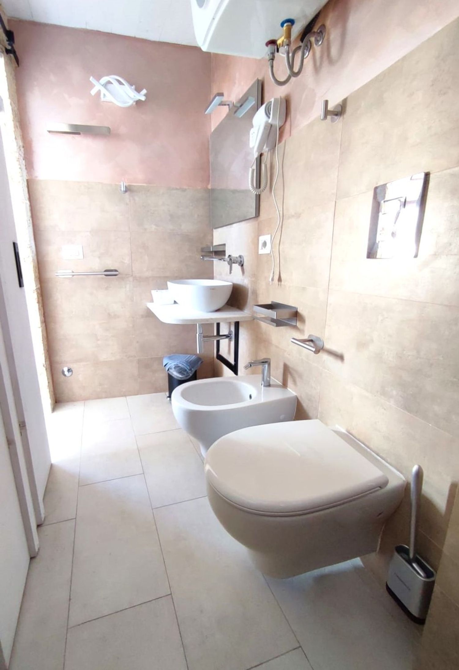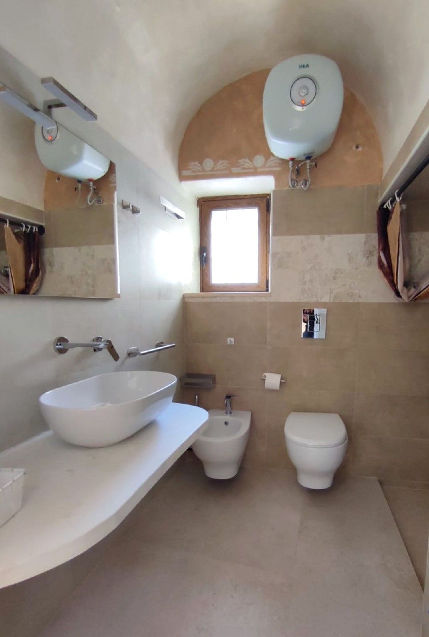La struttura composta attualmente da sei camere da letto con bagno privato, rispettivamente: - Tre camere matrimoniali con ingresso totalmente autonomo, tutte posizionate al piano terra e complete di bagno comodissimo; - Primo piano con doppia camera matrimoniale e bagno; - secondo piano con suite matrimoniale, vasca idromassaggio e terrazzino a livello vista mare. Ogni camera dotata di aria condizionata, pavimentazione nuova, impianti e sanitari nuovi.