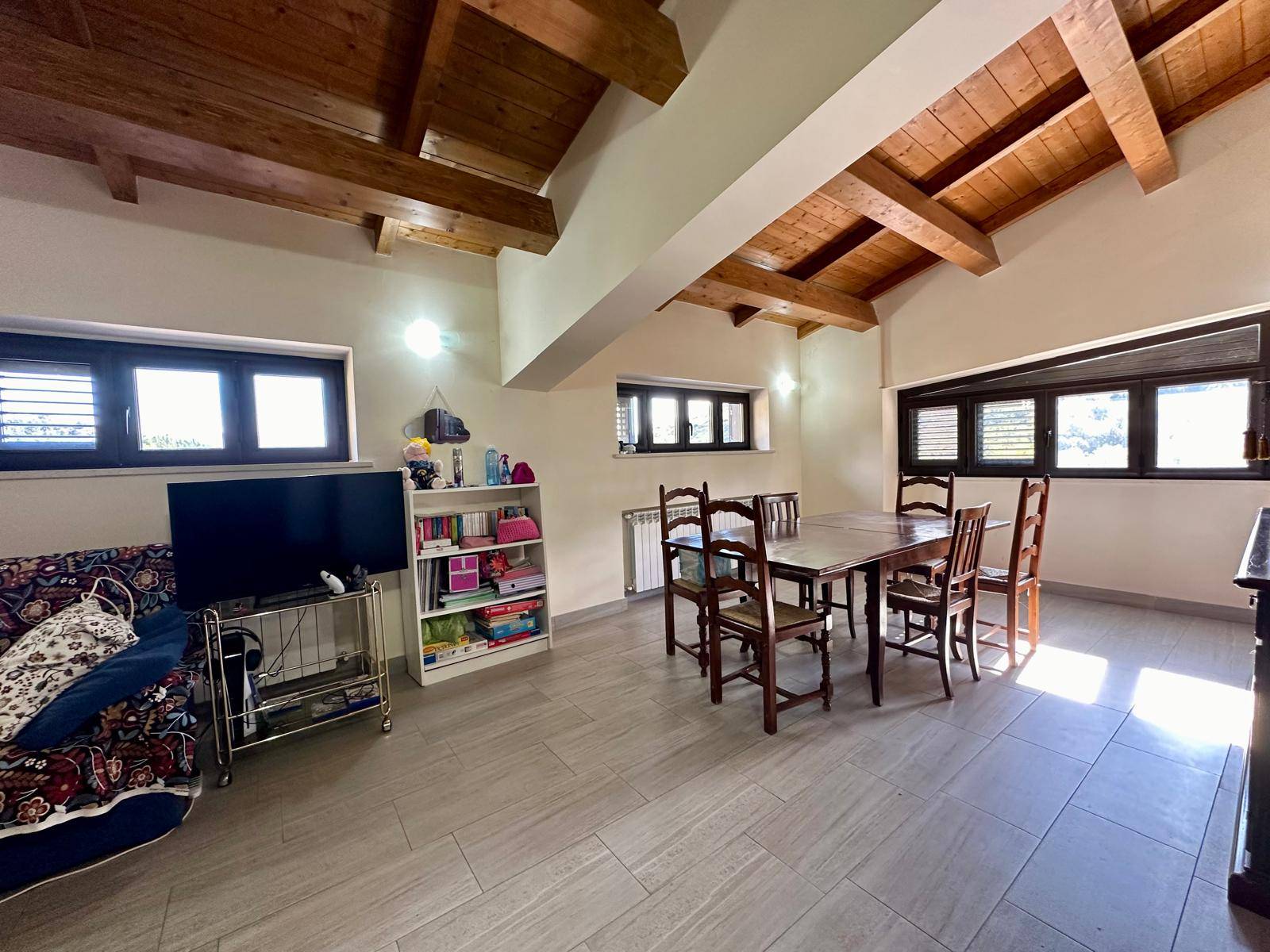 Il primo appartamento si compone di soggiorno, cucina abitabile, tinello, 3 camere e due bagni, il tutto servito da terrazzo panoramico di 84 mq ca.. Una comoda scala ci conduce al secondo appartamento dove veniamo accolti da soggiorno open space con cucina a vista servita da terrazzo di 20 mq ca., tre camere e bagno.