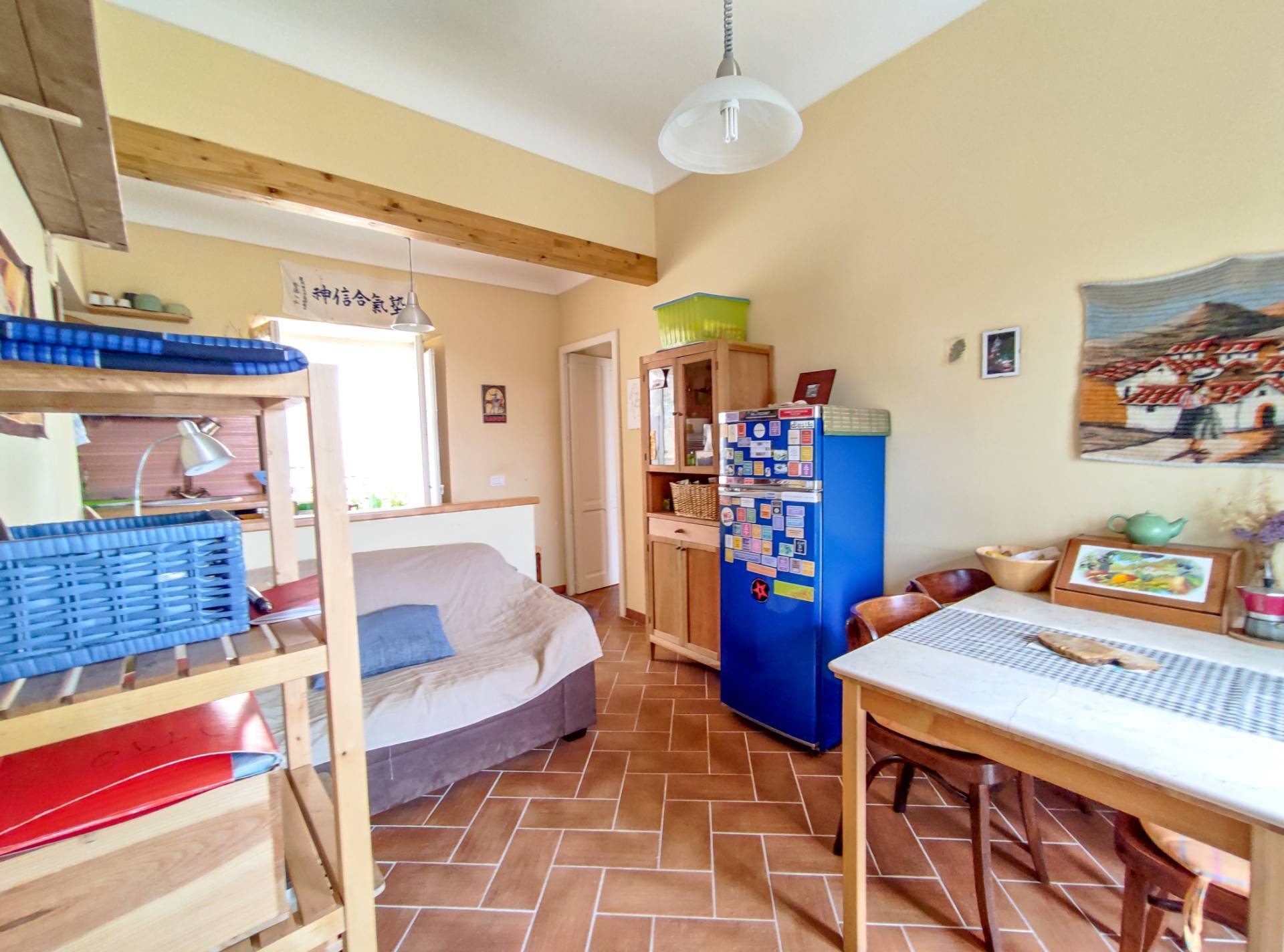 Al piano terra si accede da una graziosa saletta dingresso, impreziosita da una scala in pece ragusana che conduce al piano superiore.