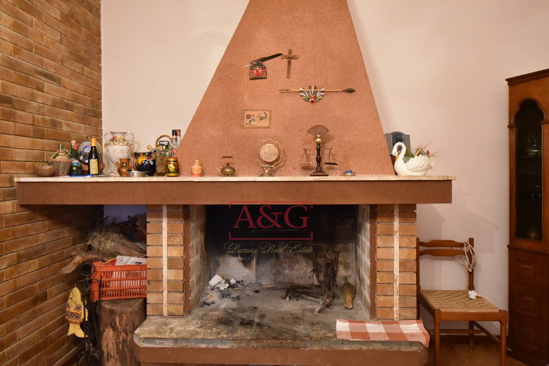 La villa con doppi accessi stata cosi destinata: al piano terra si trova la zona giorno con un maestoso camino, un cucinino ed un magazzino, poi con una scala a chiocciola si pu raggiungere il piano primo dove da un disimpegno si arriva alle camere (due matrimoniali ed una doppia), uno studio, un bagno ed un balcone, al piano si accede anche da una scala esterna ampia e comoda; al piano secondo(mansardato) collegato purtroppo da una scomoda scala in legno, sono state realizzate due camere matrimoniali, una cameretta, un bagno ed un terrazzino.