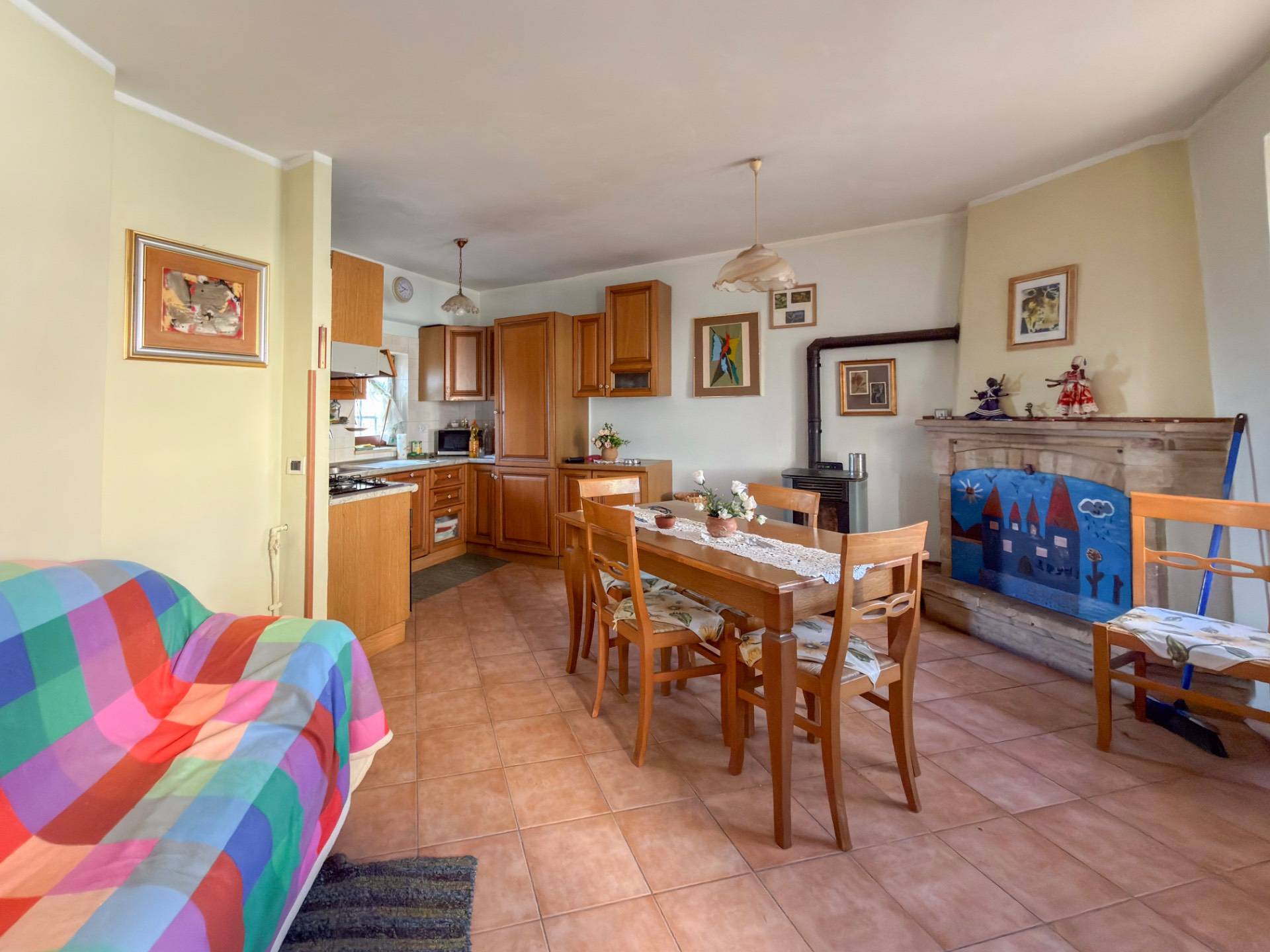 Al piano terra troviamo un accogliente salone con angolo cucina e camino, ideale per vivere la casa in ogni stagione, oltre a un bagno di servizio.