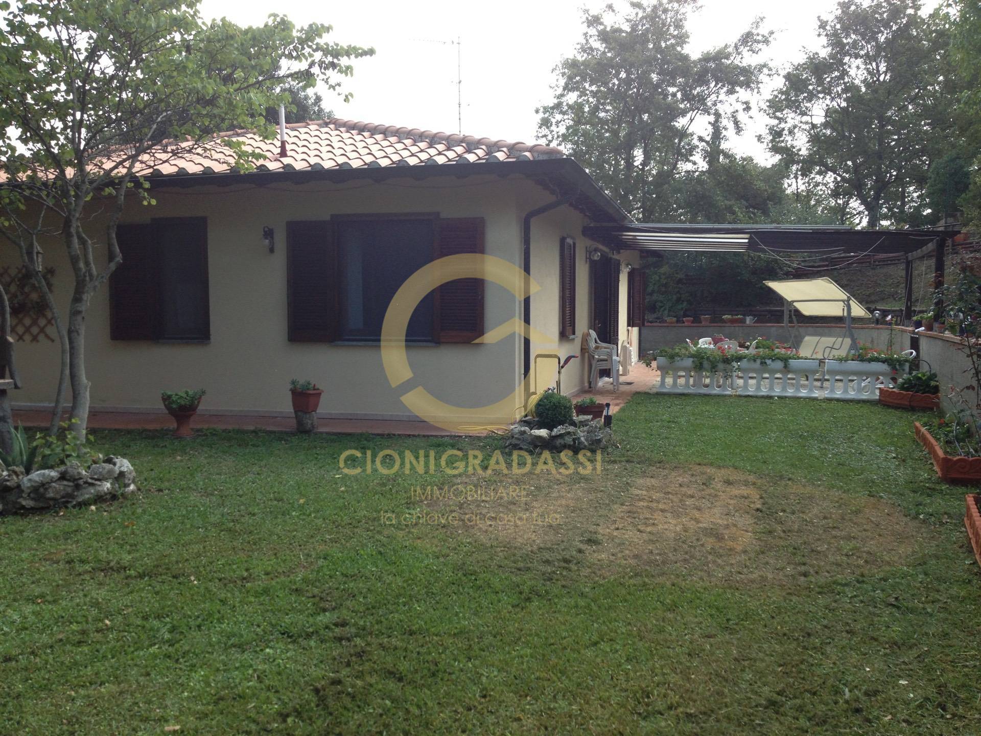 Palazzina unifamiliare su unico livello con giardino, in un luogo allinsegna del benessere e della tranquillit, immersa nella campagna toscana ma vicinissima al paese di Monteverdi Marittimo (PI), Castagneto Carducci a circa 15 km, Volterra a circa 45 km , Bolgheri a circa 27 km , Piombino circa 40 km e circa 30 km dal mare. Il paese fa parte del circondario della Val di Cornia ad un'altitudine di 364 metri s.l.m. L abitazione di circa mq.108 cosi composta: Ingresso da un loggiato esterno di circa dodici mq, ampio soggiorno-pranzo con camino, cucina , ripostiglio, bagno con finestra , nel reparto notte abbiamo un disimpegno, 2 camere, studio, bagno con finestra.