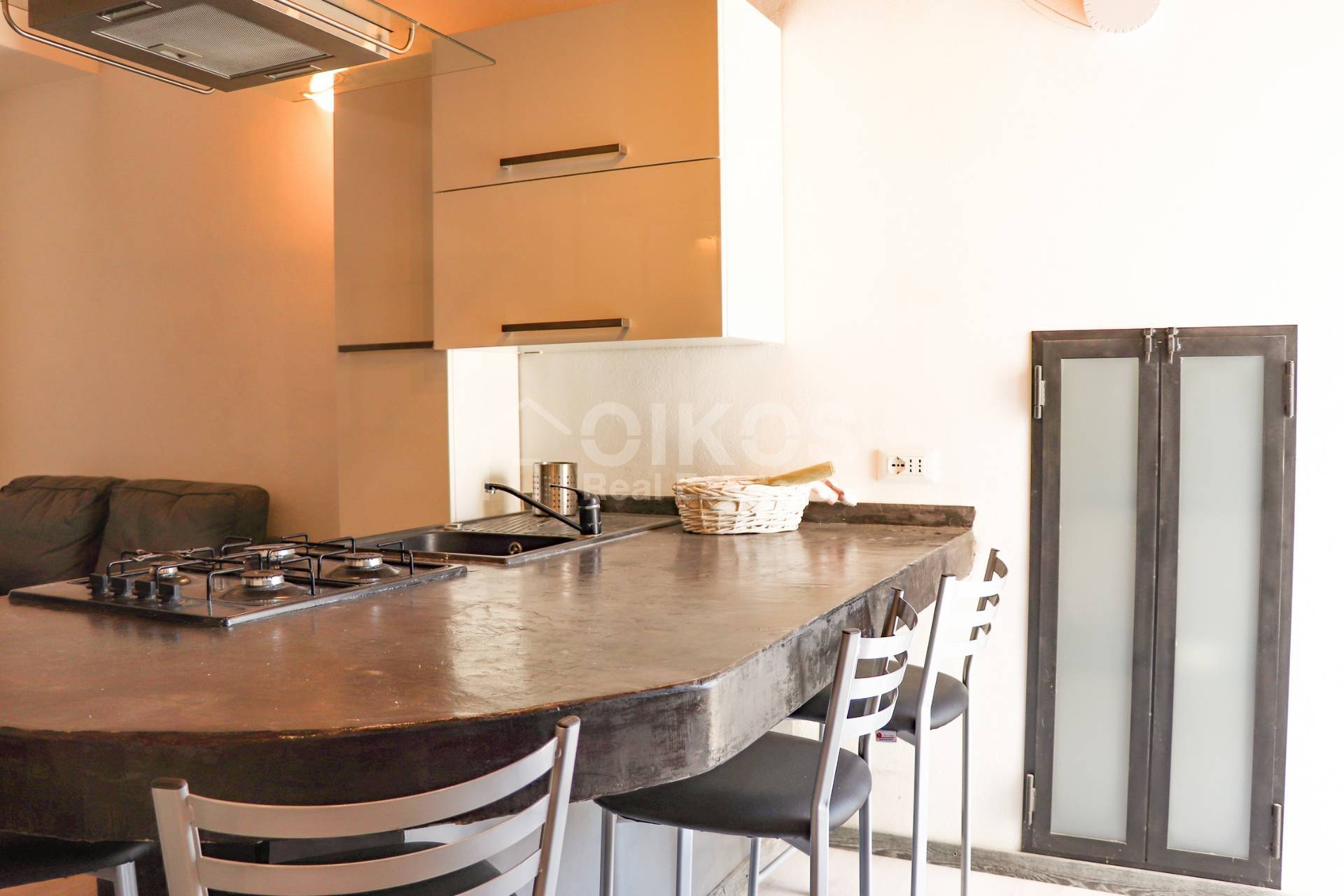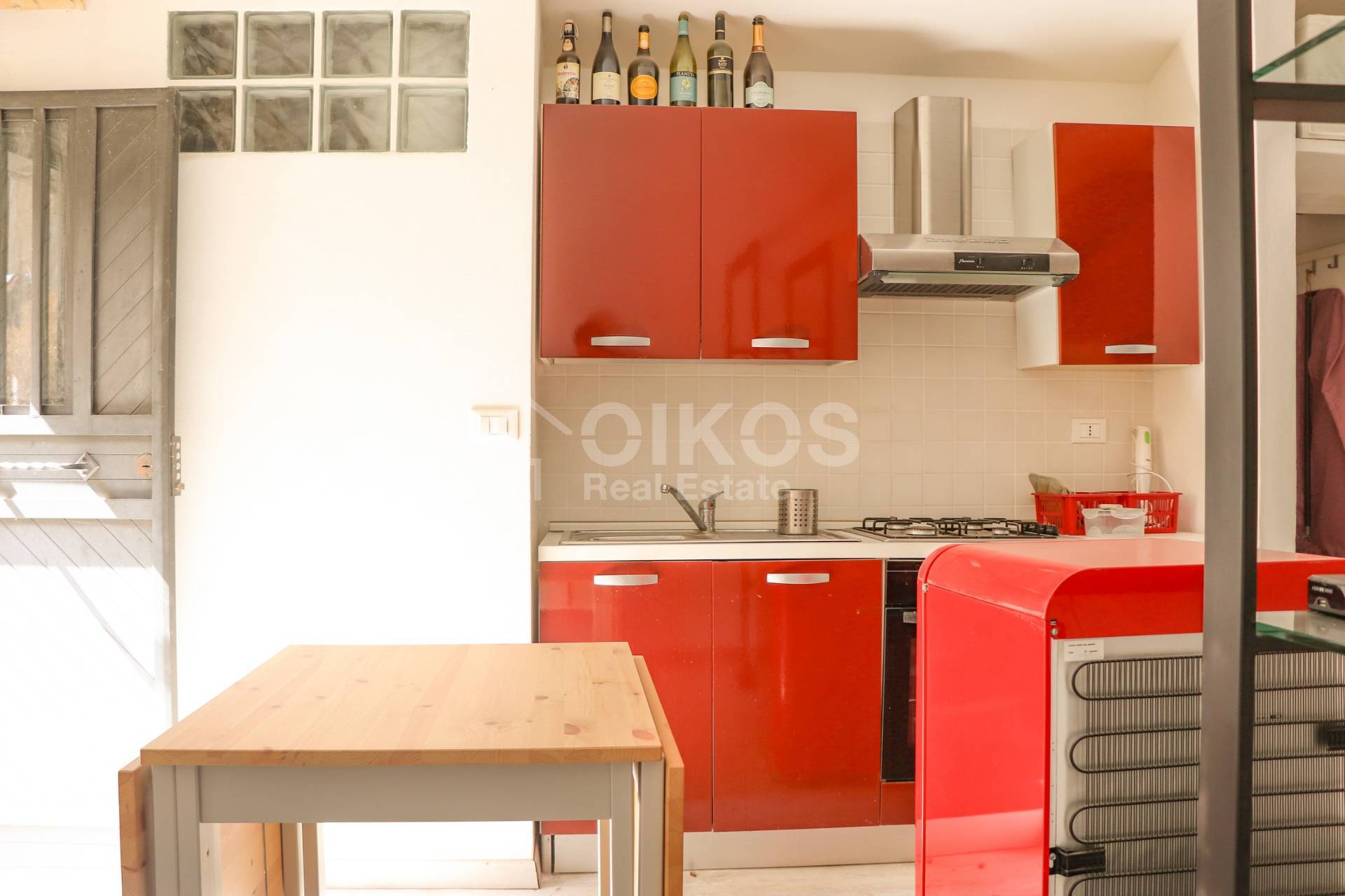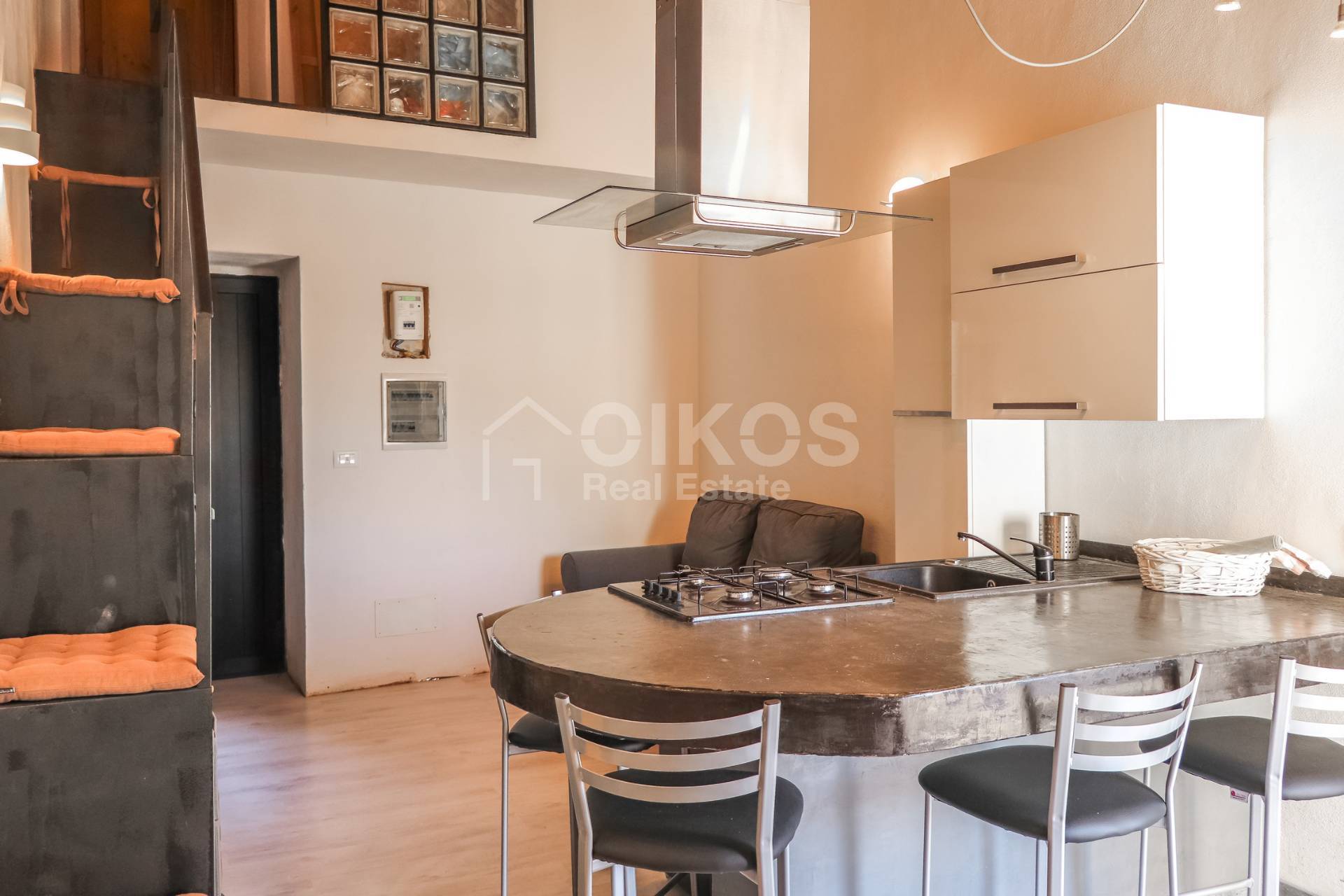Si tratta di un immobile da poco ristrutturato, sito al piano terra con una superficie di circa 61 mq. Si articola in una zona living con angolo cucina, una camera da letto, un ripostiglio ricavato in un soppalco accessibile tramite scala in ferro e il bagno.