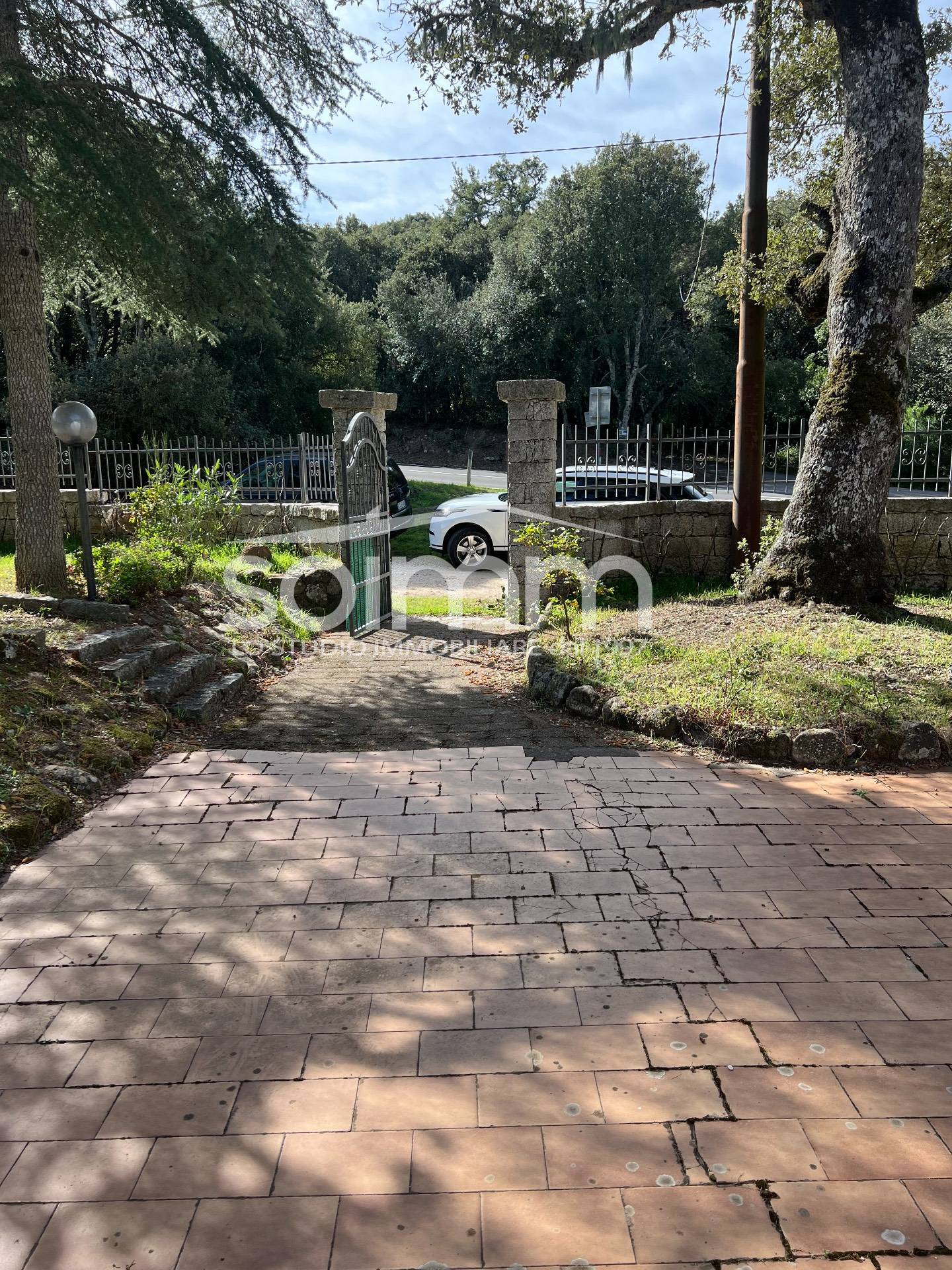 Veranda esterna accessibile dalla cucina in cui abbiamo uno splendido spazio conviviale con tavoli in granito, barbecue in muratura e forno "tipo sardo". Nel piano seminterrato, al di sotto del loggiato di ingresso c' una splendida e funzionale cantina, dotata anch'essa di camino e spazio rustico perfetto per pranzi e cene. Il giardino libero misura circa 1800 mq e risulta sui quattro lati dell'immobile.