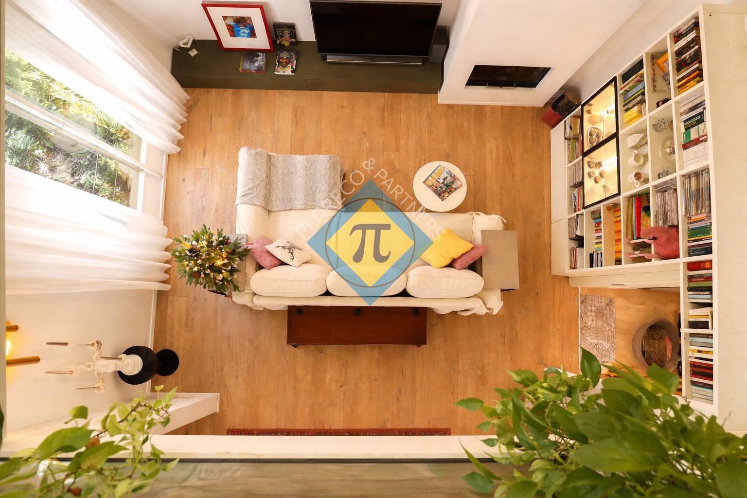 Il salotto non chiuso, non nascosto: respira, visibile dallalto, crea un colpo docchio continuo e una sensazione di ampiezza rara da trovare in una casa singola.