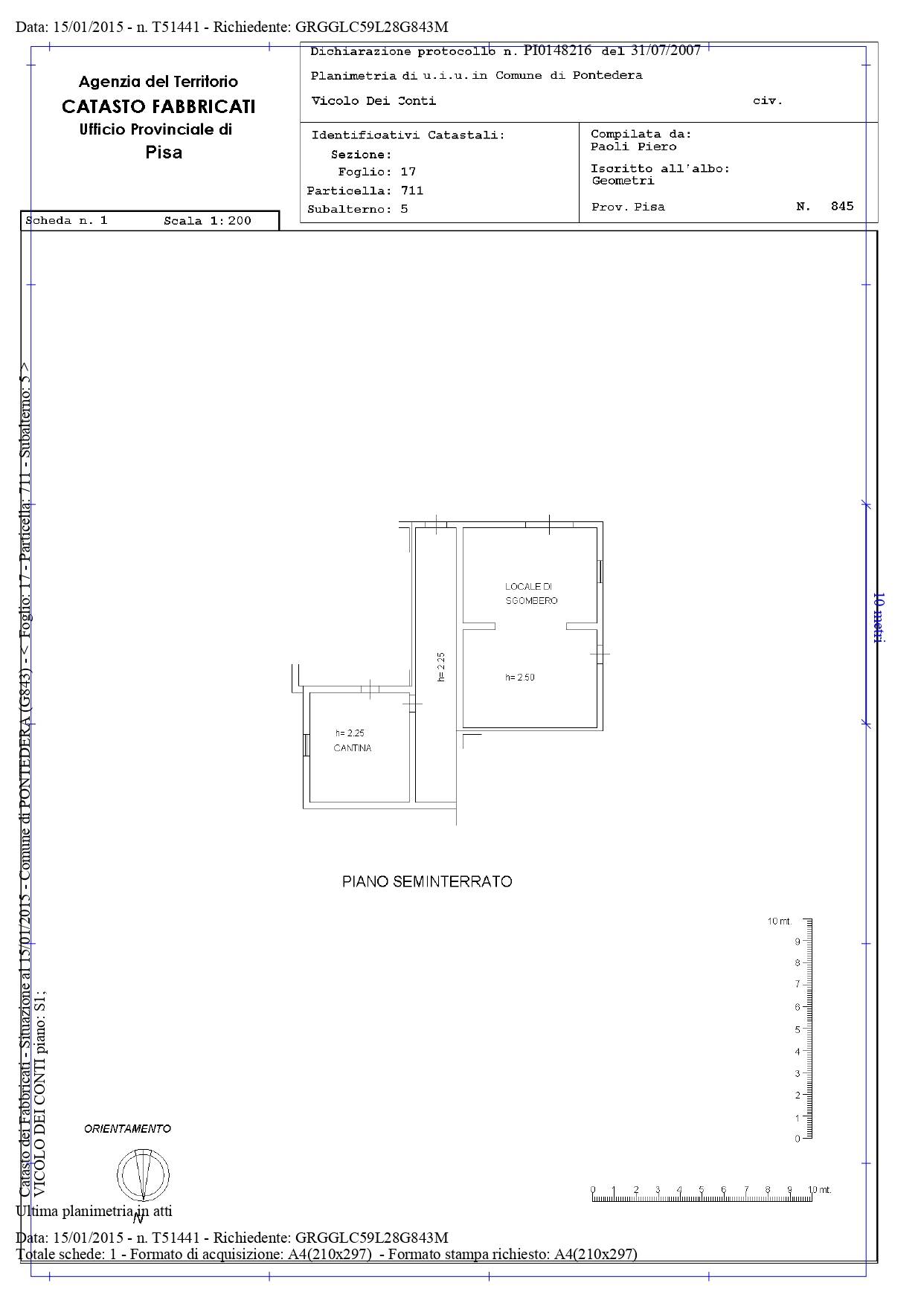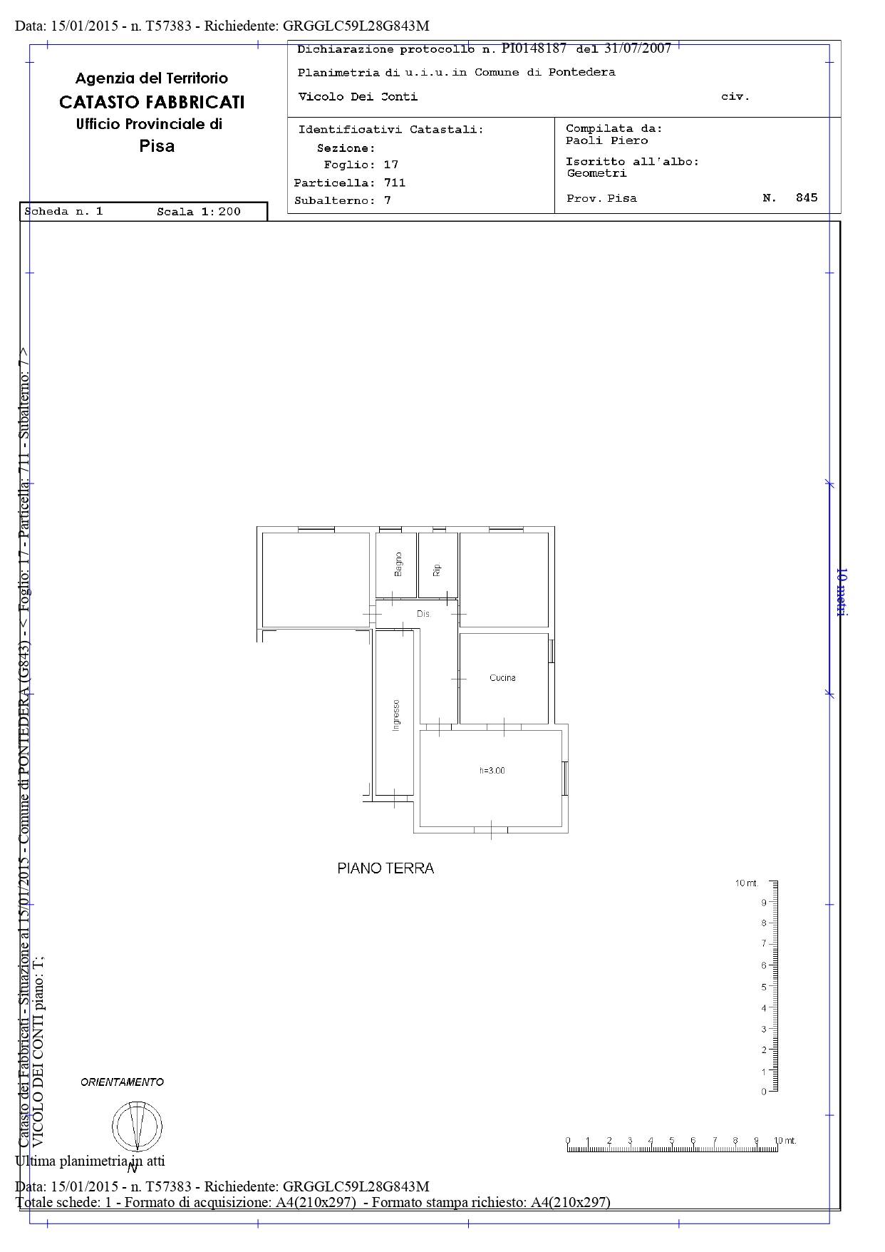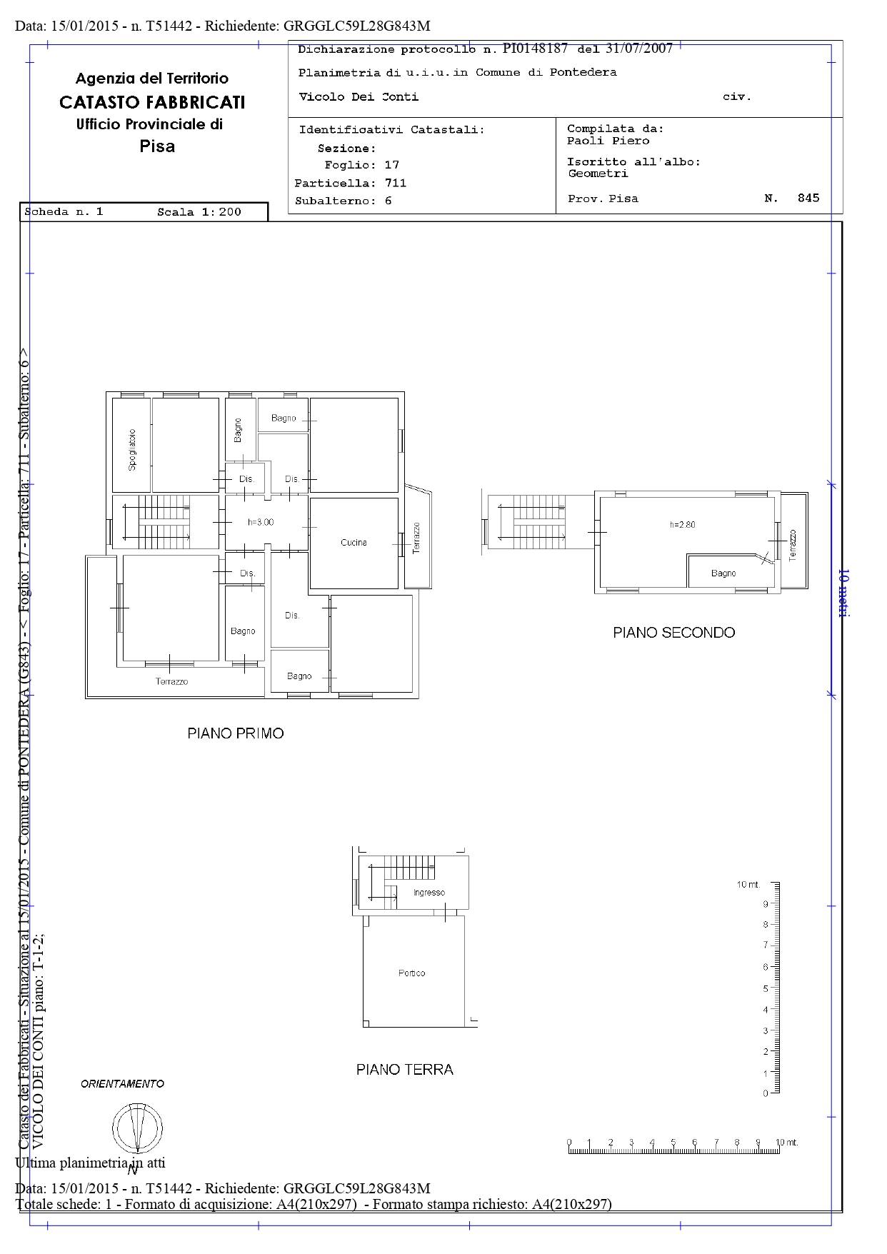 A Pontedera, in localit La Rotta ed in silenziosa posizione collinare, VENDIAMO abitazione unifamiliare distribuita su tre livelli e circondata da resede privato.