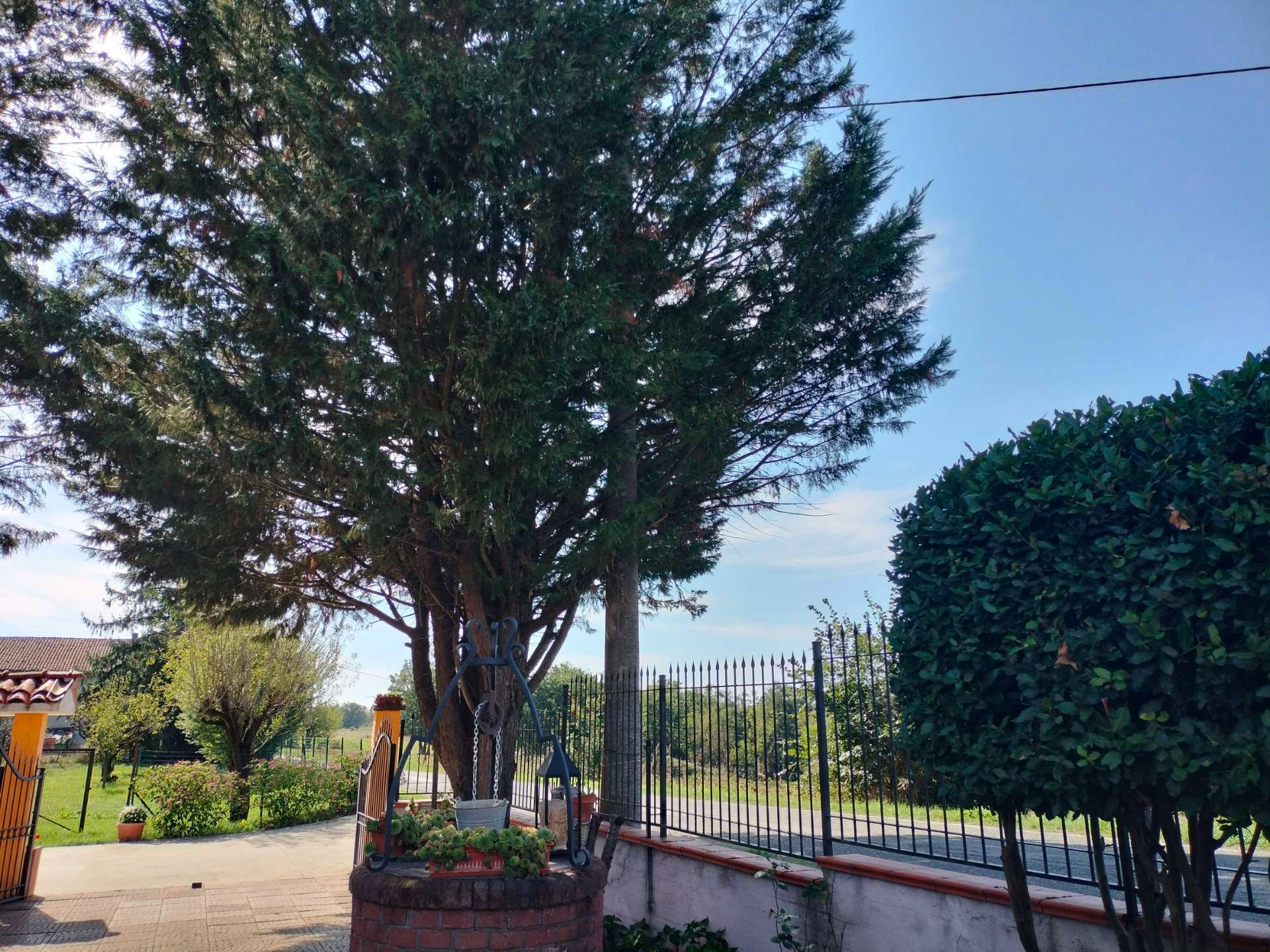 All'esterno abbiamo un ampio cortile, dove presente un pozzo, il box auto, usato come deposito e ricovero per l'attrezzatura per il mantenimento del verde.