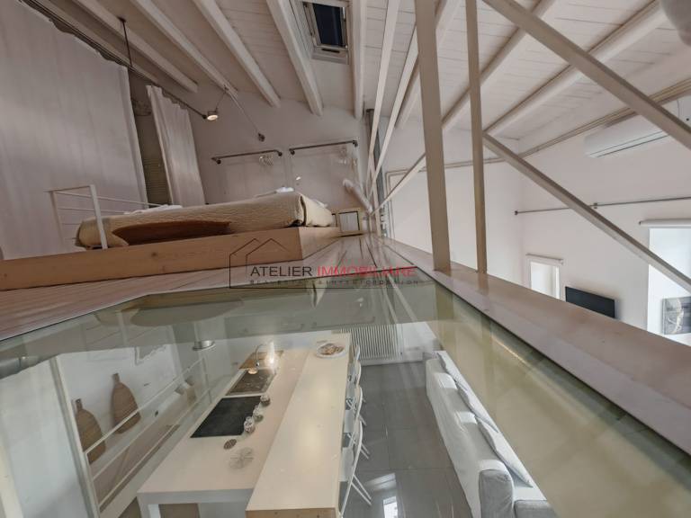 La camera da letto, spaziosa e raffinata, si trova su un soppalco scenografico ed dotata di bagno en suite.