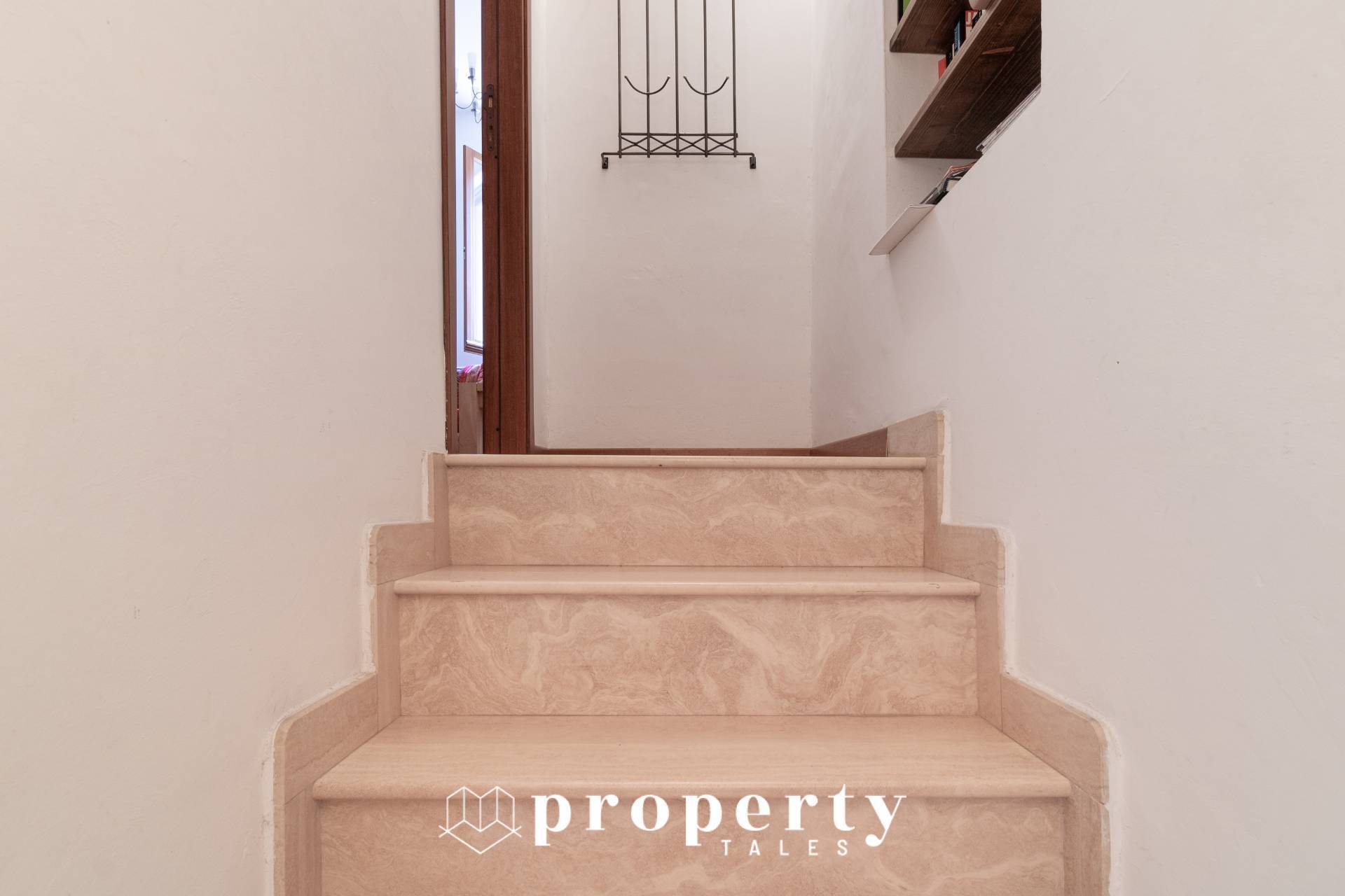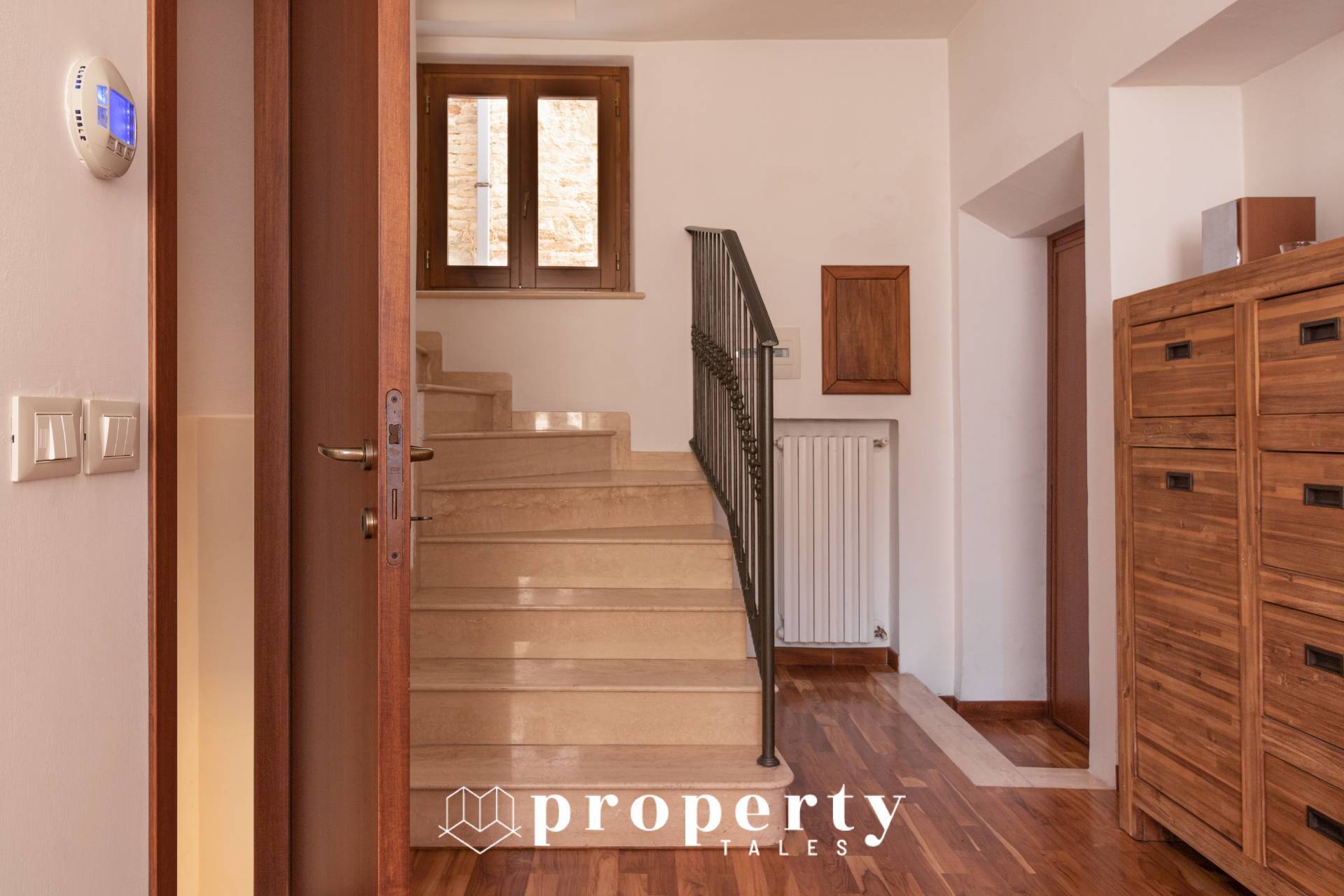 Tutti i piani sono collegati da una scala interna rivestita in travertino e presentano una pavimentazione in parquet fatta eccezione per il piano terra in cui troviamo una pavimentazione in cotto.