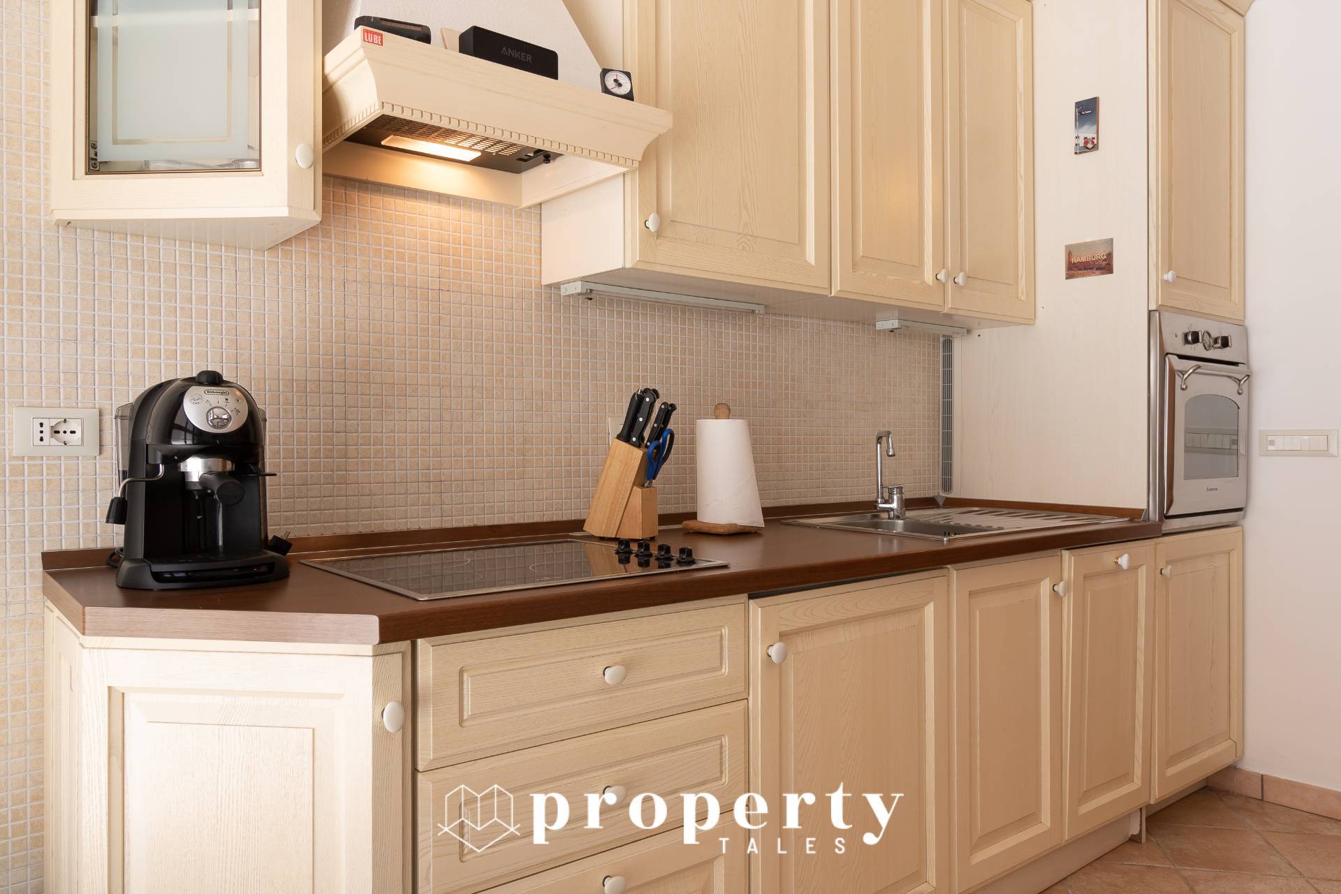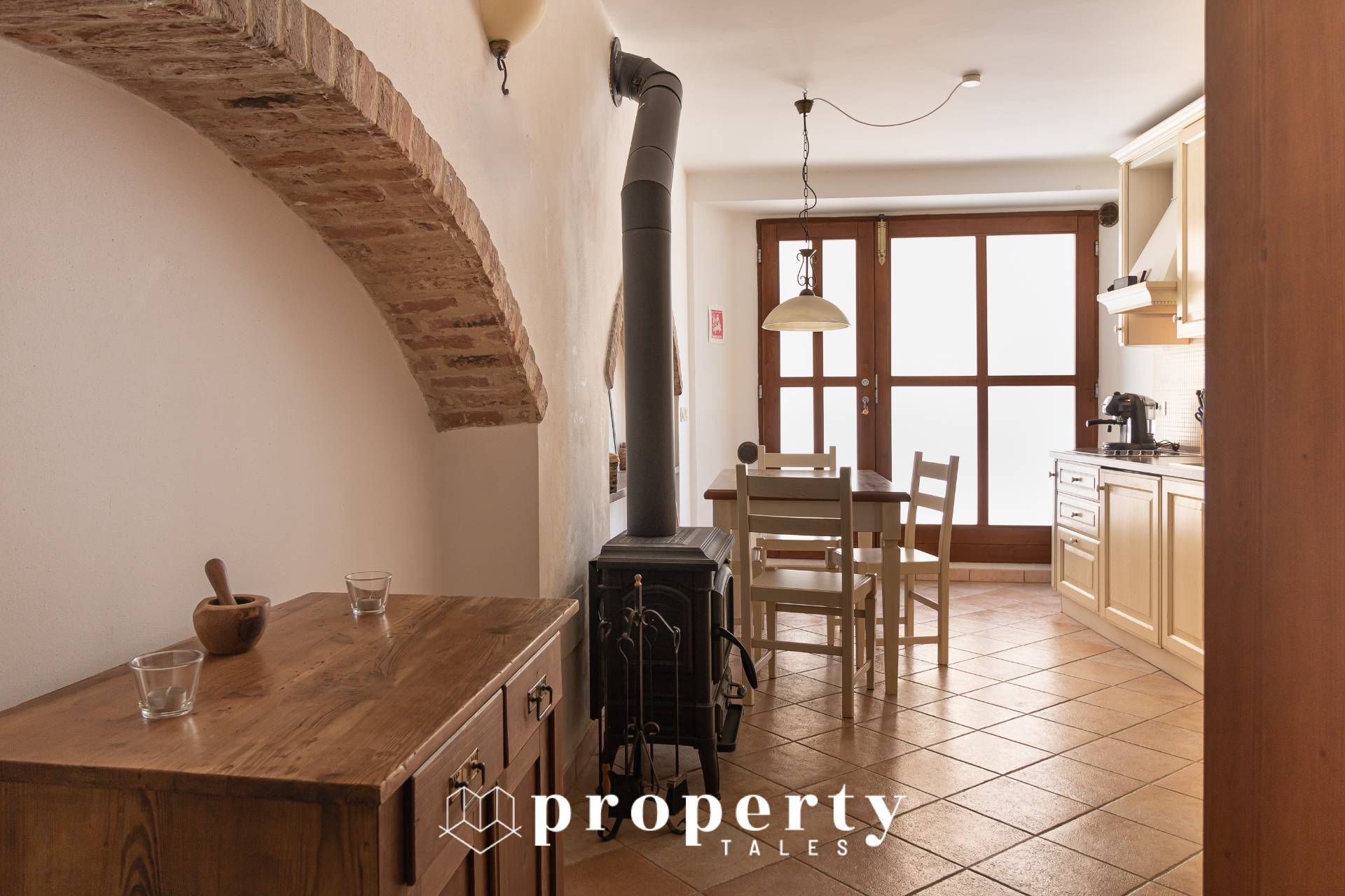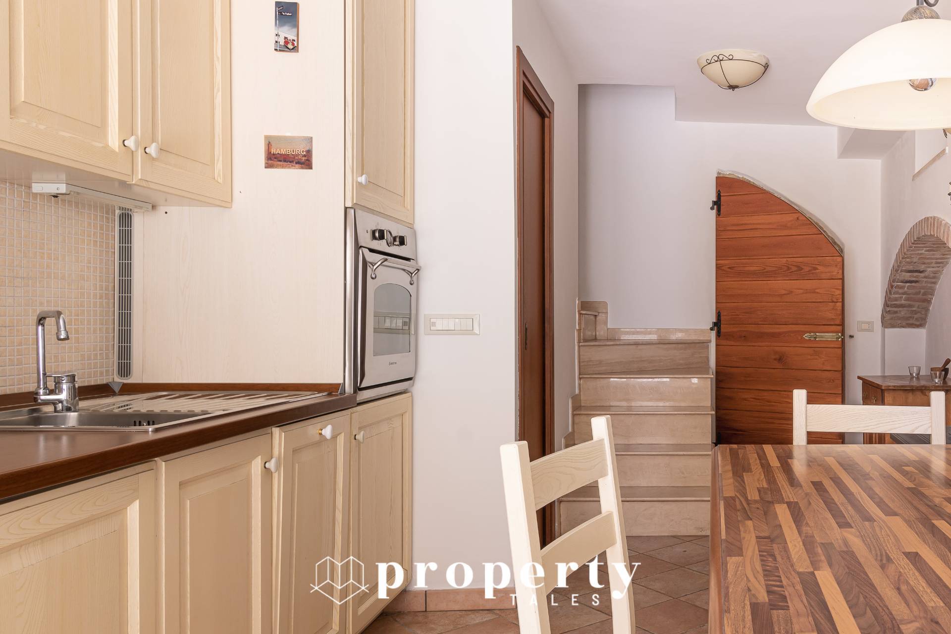 Al piano terra, in un grazioso ambiente, troviamo una cucina abitabile dotata di lavastoviglie, frigorifero, forno tradizionale e piano cottura ad induzione (vedi foto di dettaglio), oltre che un piccolo bagno e un ripostiglio all'interno di un piccolo locale cantina con volta a botte.